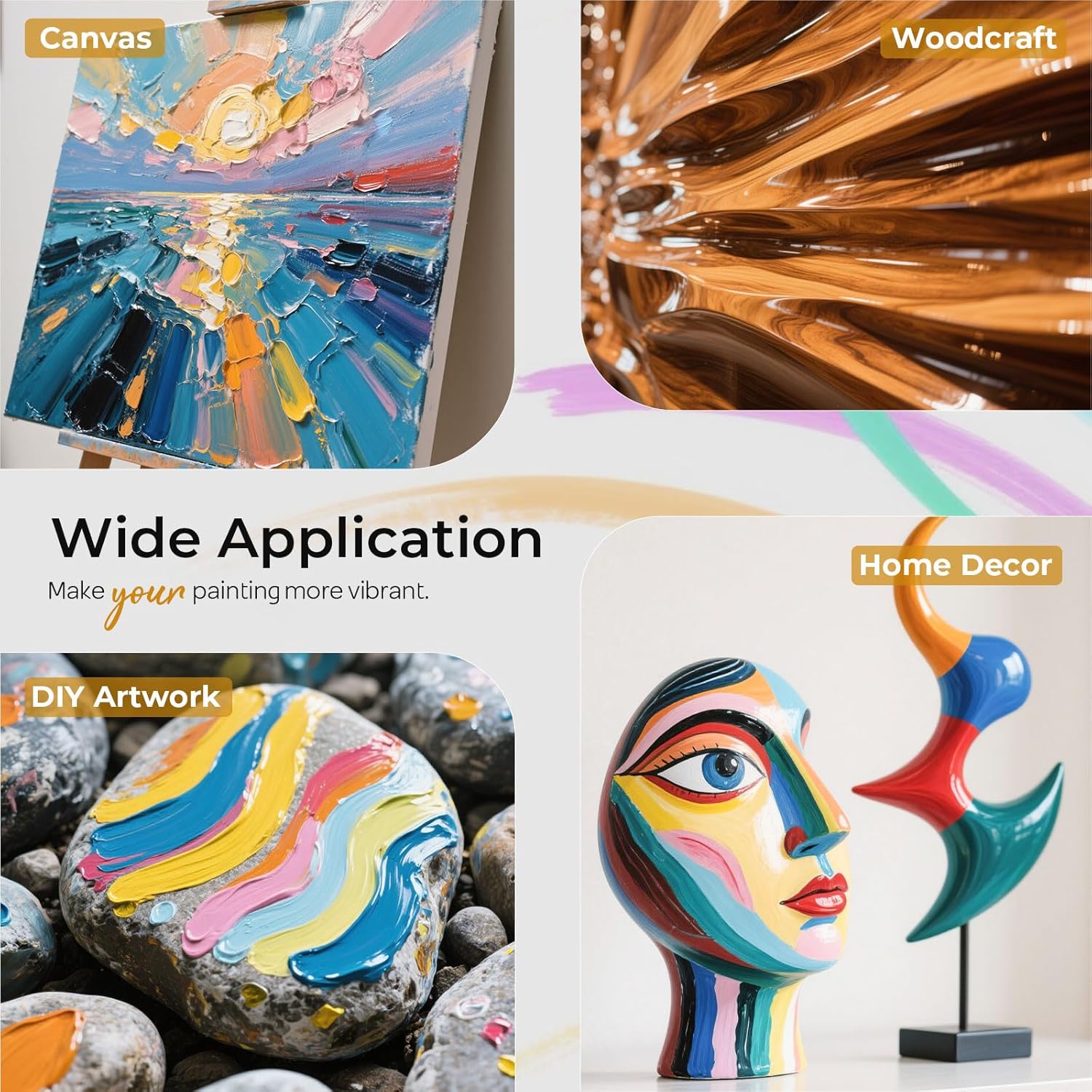 - HIGH GLOSS FINISH: Our glossy varnish creates a clear, tough protective film over the painting, which enhances the vibrancy of the acrylic painting, delivers a brilliant glossy sheen and brings out the richness of color.
