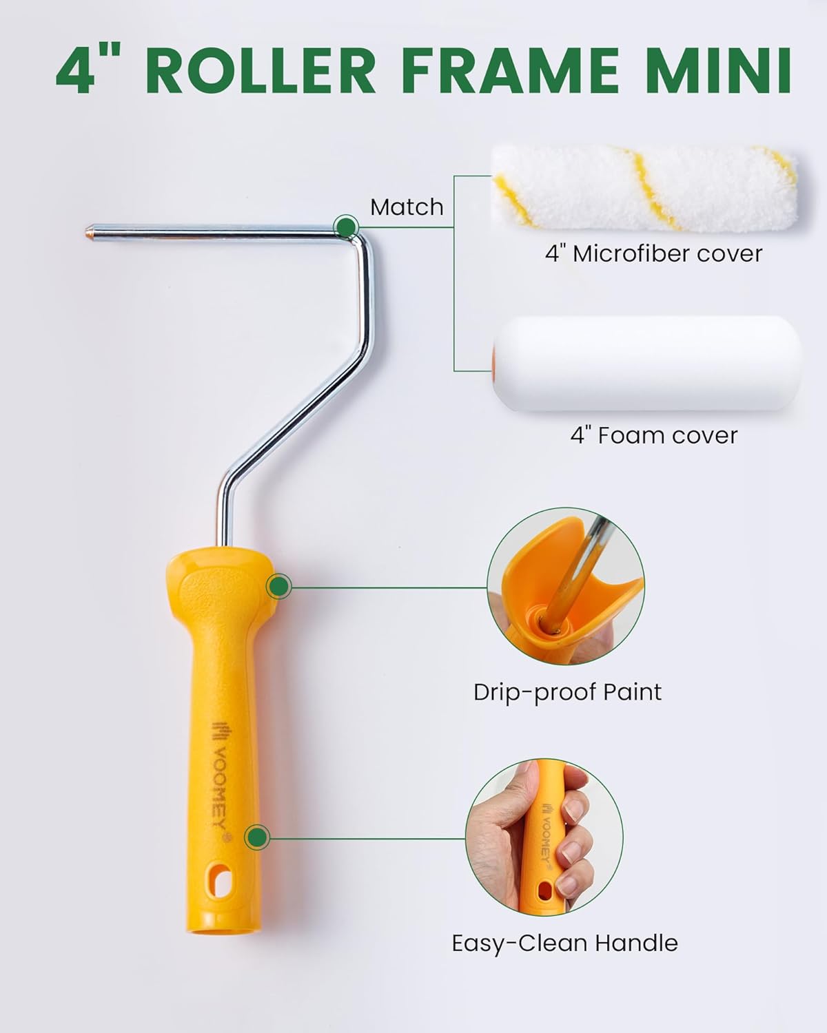 VOOMEY Paint Roller 4 inch with Small Foam Roller Paint,13-Piece Mini Paint Roller Kit, 4" Microfiber Paint Rollers, Roller Paint Brush, Paint Tray with Liners, Perfect for DIY & House Painting