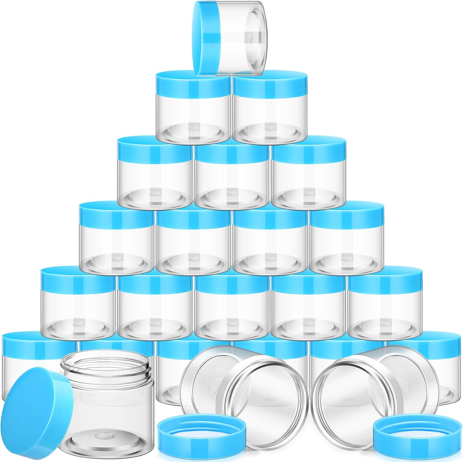 SATINIOR 24 Pieces Empty Clear Plastic Jars with Lids Round Storage Containers Wide Mouth for Beauty Product Cosmetic Cream Lotion Liquid Butter Craft and Food(Blue Lid,6 oz)