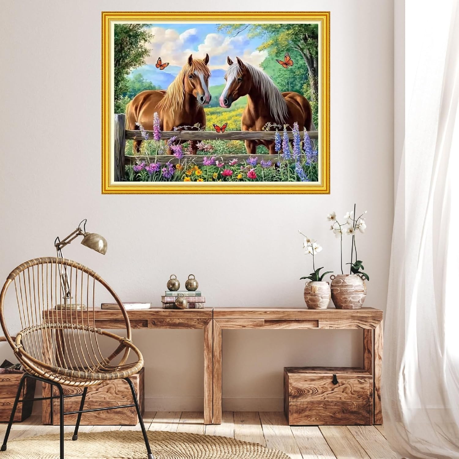 Hopeart Stamped Cross Stitch Kits for Beginner Embroidery Kits for Beginners Adults DIY 11CT Cross Stitch Patterns Needlepoint Kits Crossstitching Kits-Couple Horse 16x20 inch
