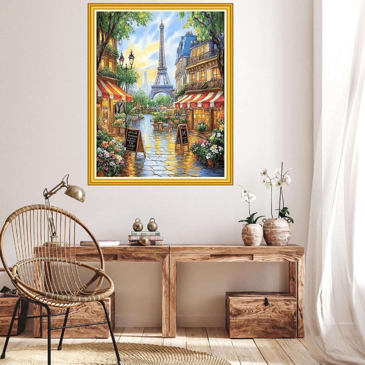 Hopeart Stamped Cross Stitch Kits for Beginner Embroidery Kits for Beginners Adults DIY 11CT Cross Stitch Patterns Needlepoint Kits Crossstitching Kits-Eiffel Tower Street 16x20 inch