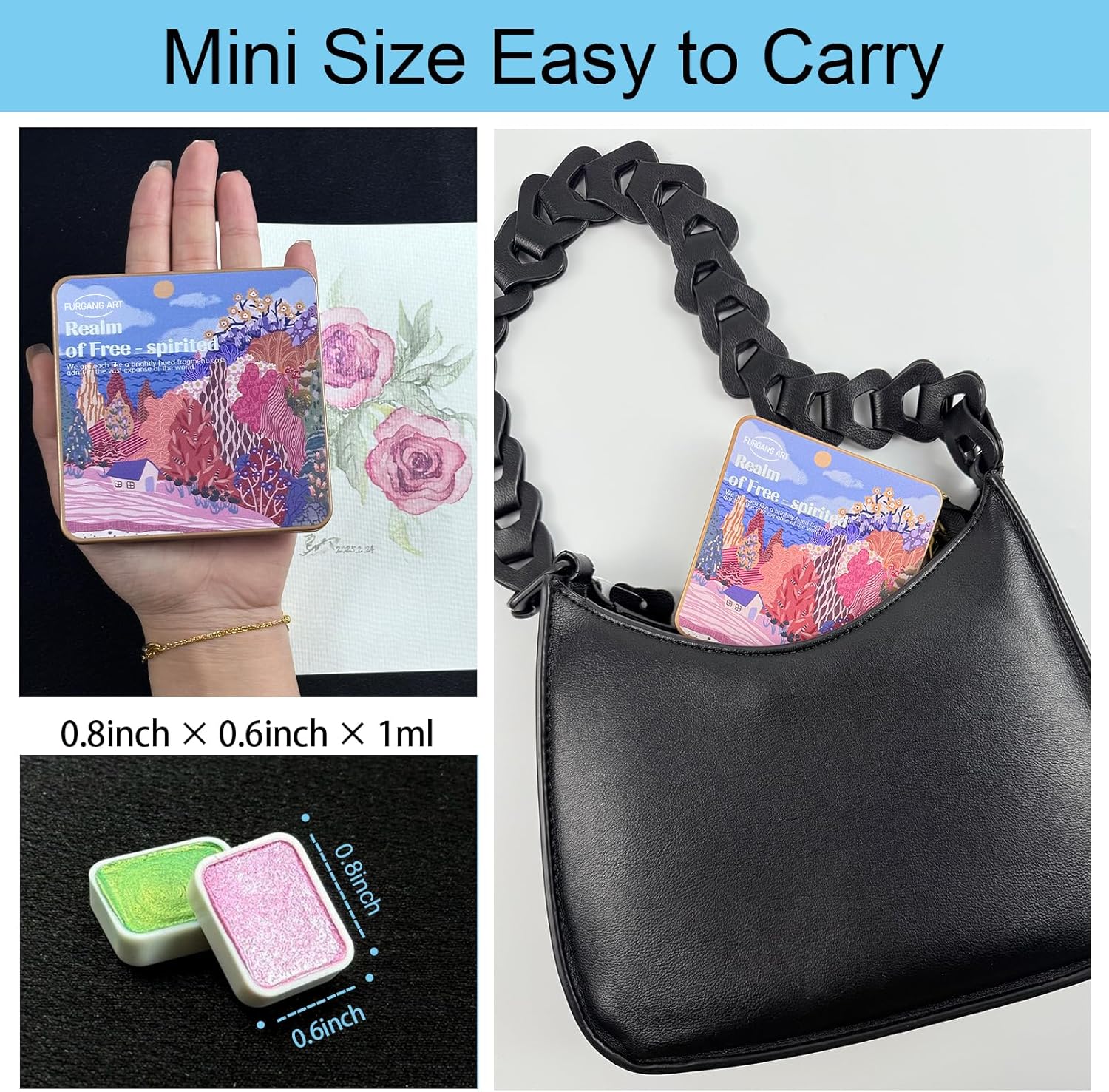 Mini Shifting Watercolor Paint Set, 30 Color Glitter Watercolor Painting Kit, Metallic Watercolor Paints, Solid Water Colors Paint Adult Set, Detail Paint Brush Included, for Artists