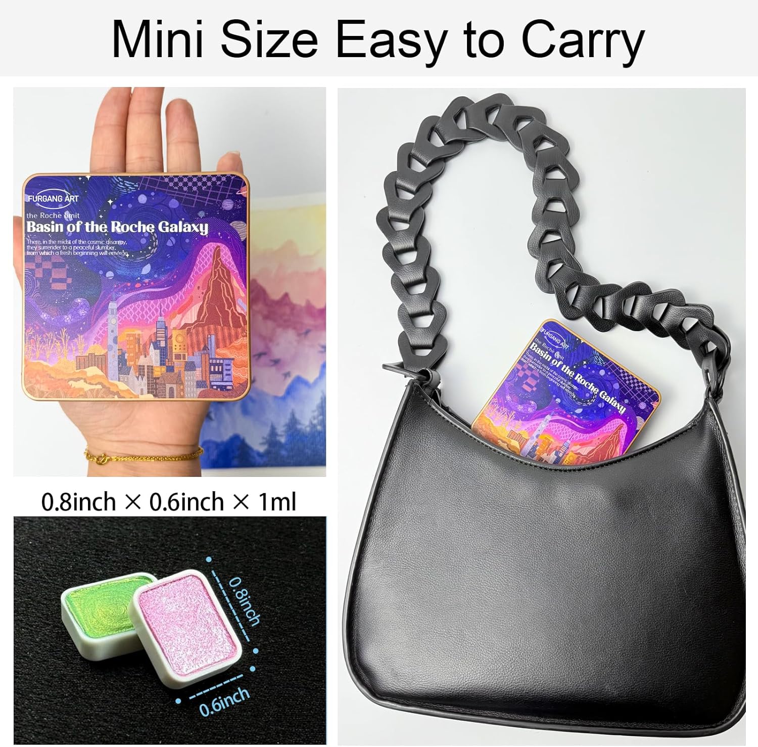 Mini Shifting Watercolor Paint Set, 30 Color Glitter Watercolor Painting Kit, Metallic Watercolor Paints, Solid Water Colors Paint Adult Set, Detail Paint Brush Included, for Artists