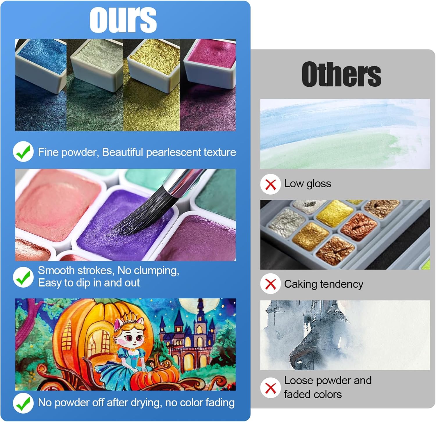 - 【Exceptional Shimmering Texture】: CraftyManor Pearlized Watercolors are formulated with premium, modified mica powder, resulting in a stunningly glossy finish. Free of acids and toxins, they are safe to use and will add a radiant touch to your artwork
