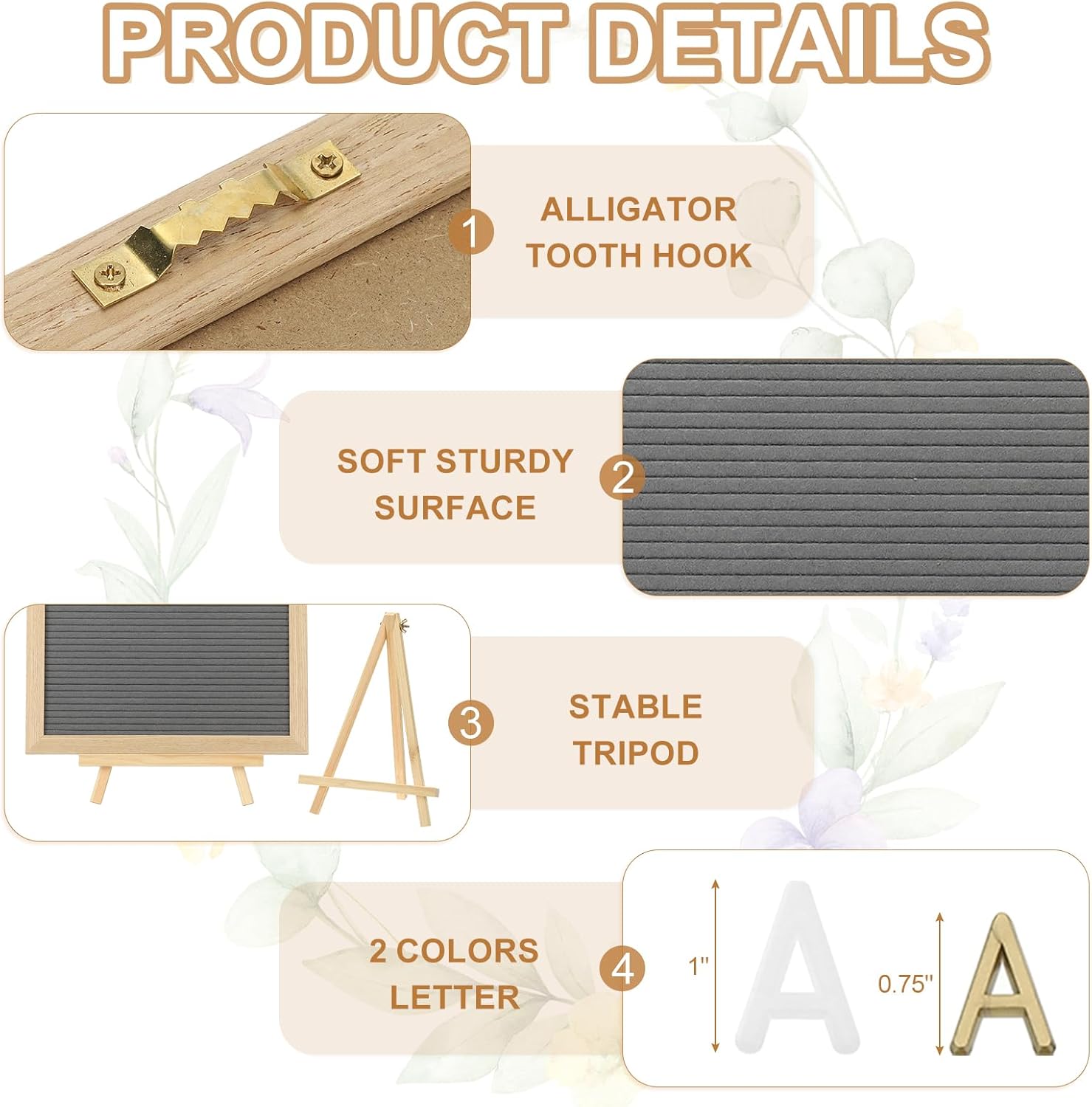 - Material: Wood, Felt, Plastic;Board Color: Gray Wood;Letter Color: White Bronze;Size: 30.5x41cm / 12x16";Installation Method: Hanging, Stand Supported;Accessories: Storage Bag, Stand;Package Includes: Message Board x 1, Letter Set x 3, Storage Bag x 1, Stand x 1