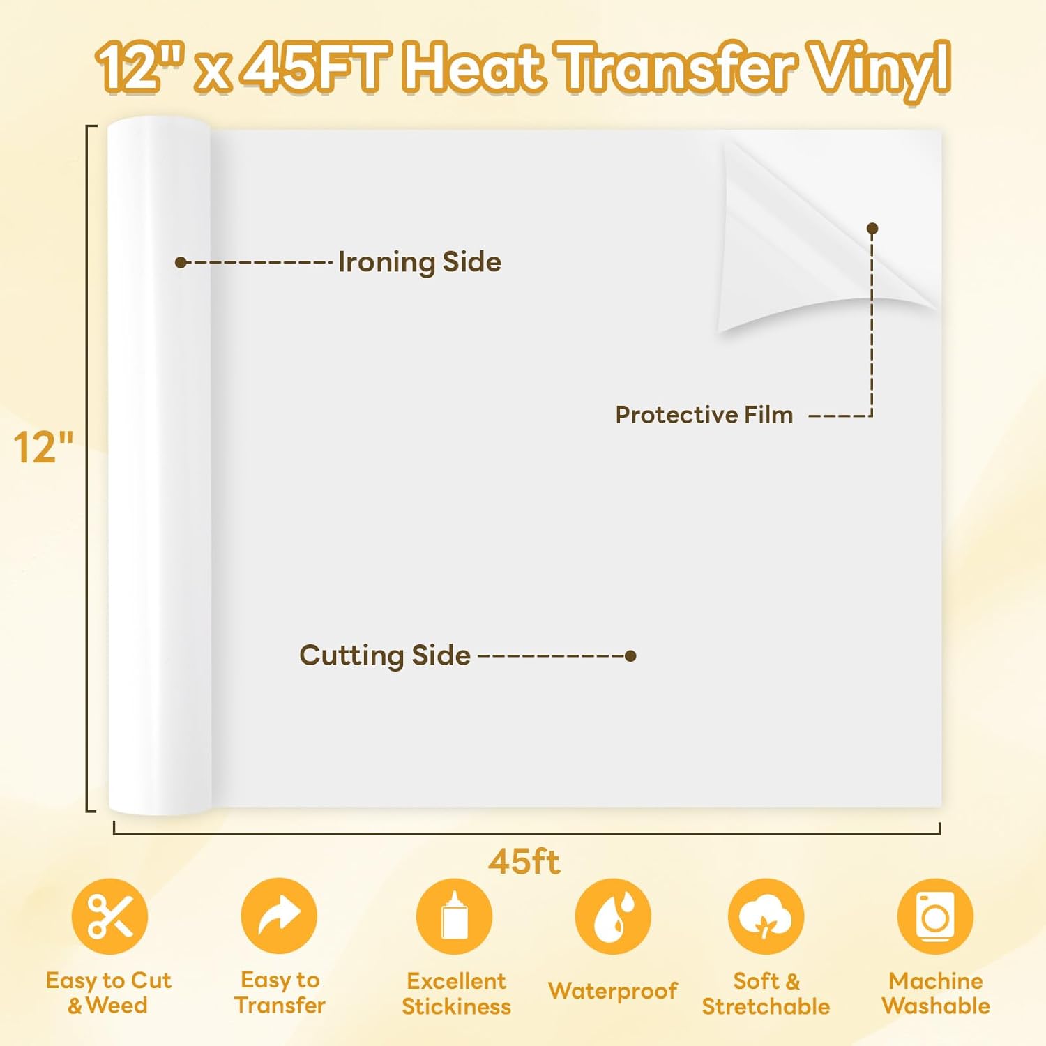- 【12 inches x 45 Feet】Our White heat transfer vinyl provides 45 feet continuous material (12" wide), offering the best value for crafters. Get the lowest cost per foot compared to small packs, perfect for bulk projects. Our white htv works flawlessly with all cutting machines for seamless crafting experience