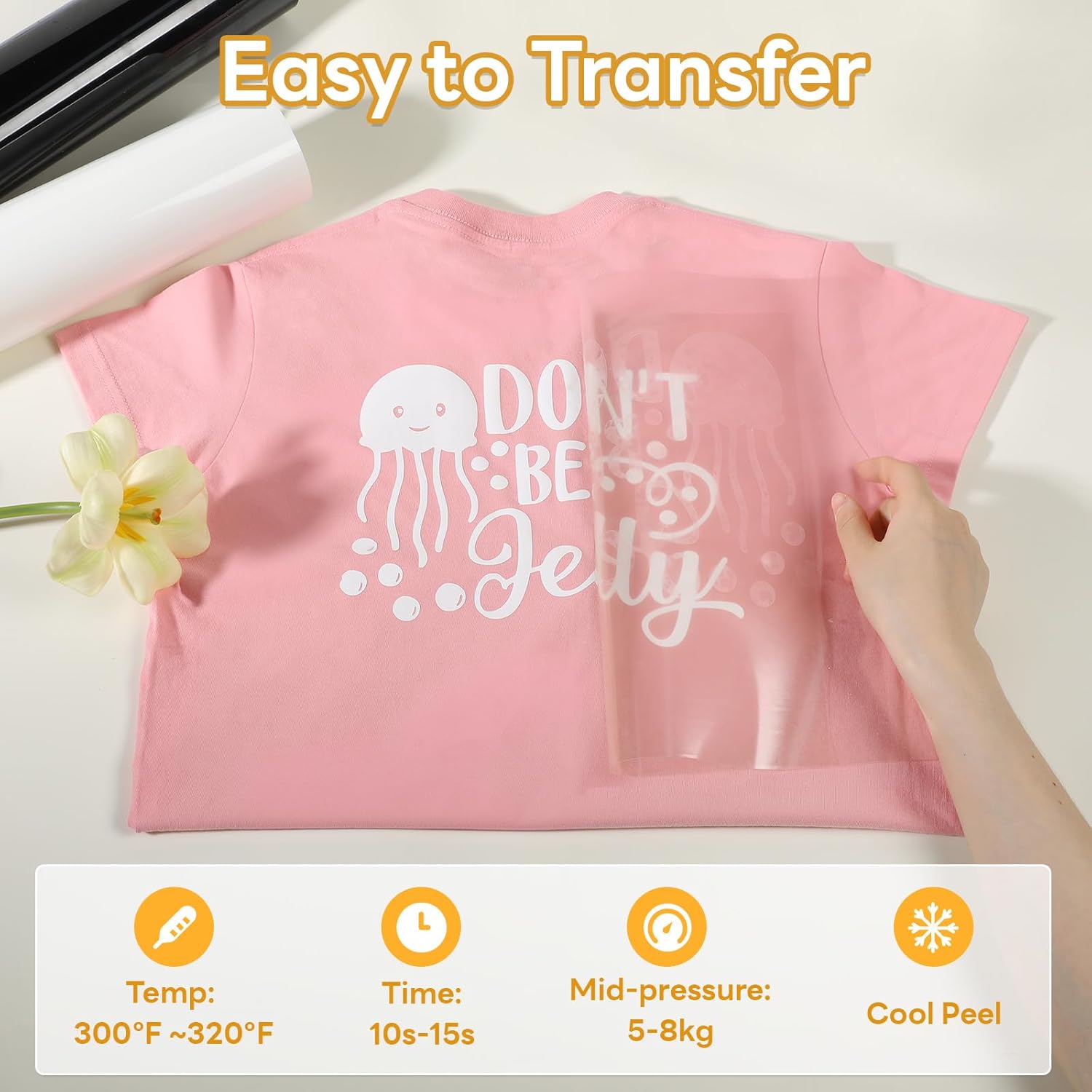 - 【EASY TO CUT & WEED & TRANSFER】 Our premium quality white iron on vinyl will save your time which you may waste on each image or letter, because you can cut and weed easily through the designs just right.The white htv vinyl is sensitive to temperature and pressure, which can be heat transferred on any t-shirt easily