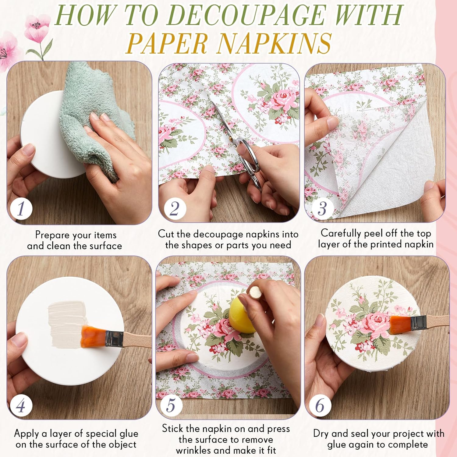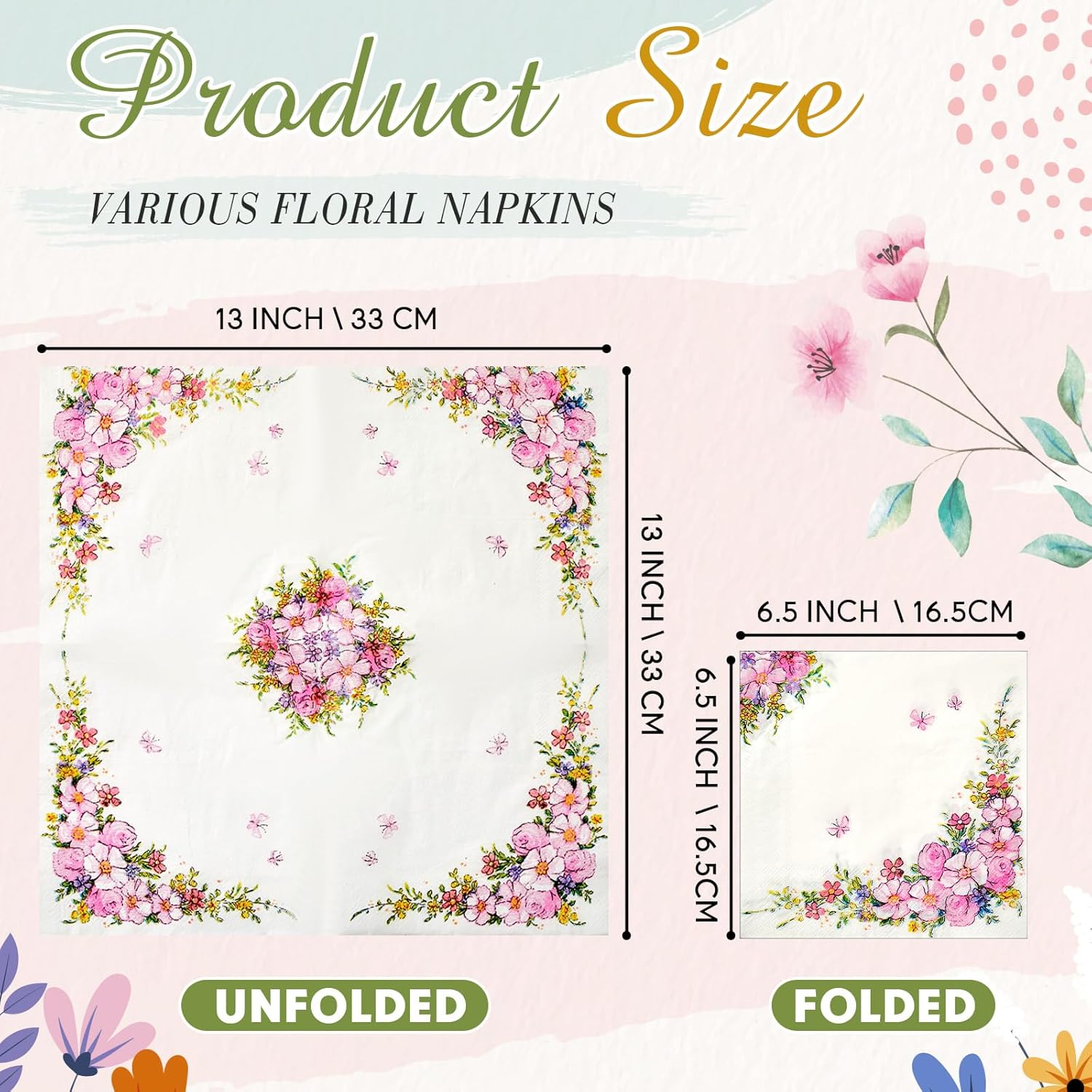 - Convenient Dimension: the 33 cm or approximately 13 inches size of the collage napkin panels is the right fit to ensure easy application; Additionally, when folded, the length is 6.5 inches, offering you a simple yet satisfying usage experience