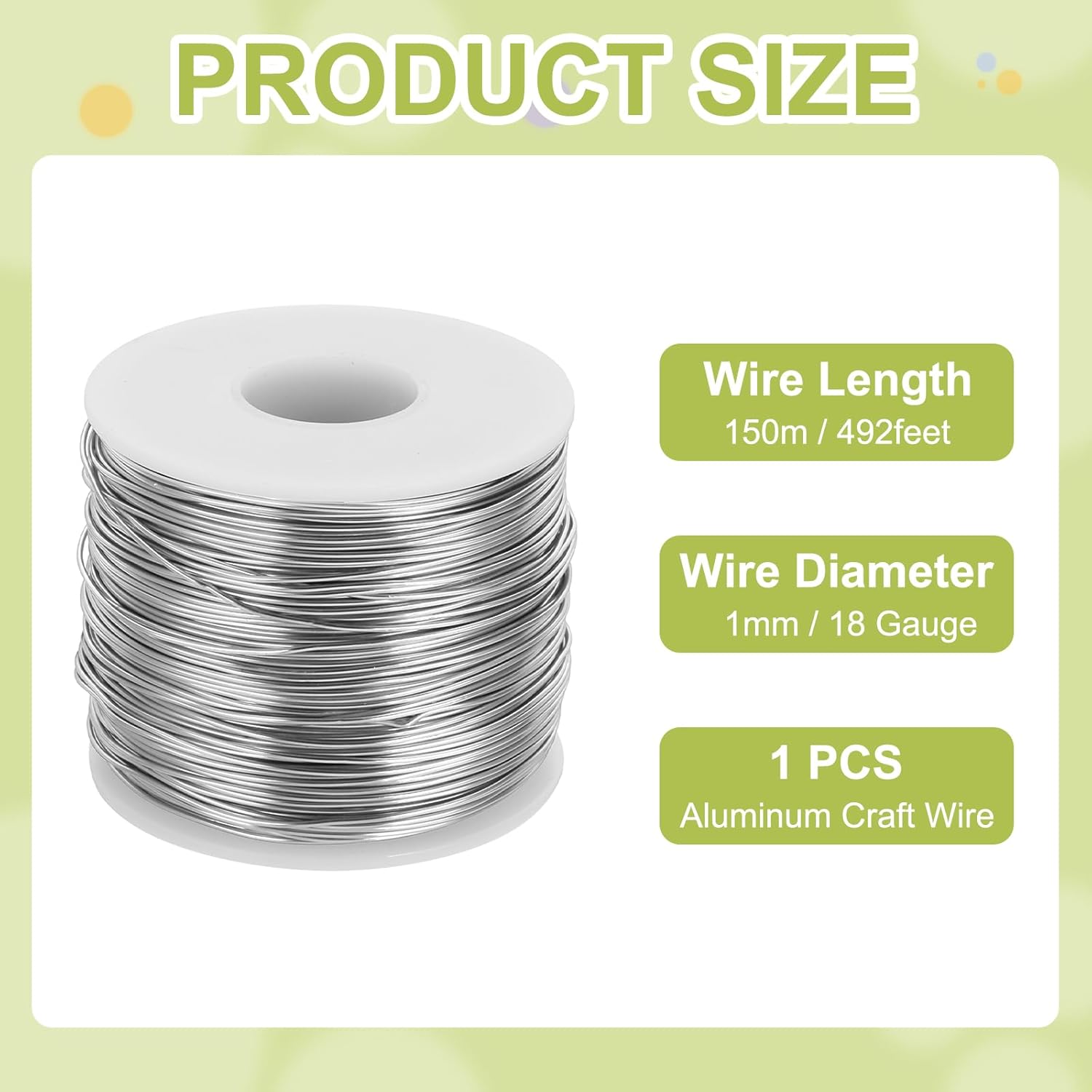 - Package contains 1pcs x Aluminum Craft Wire, wire diameter: 18 Gauge (1mm), wire length: 492 Feet (150m)