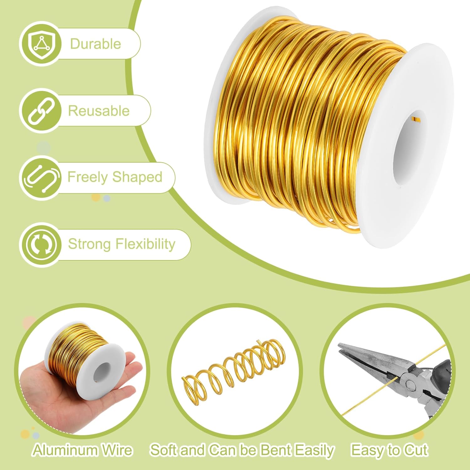 MECCANIXITY 12 Gauge Anodized Aluminum Craft Wire Bendable Bonsai Training Wire 98 Feet 2mm for Sculpting Crafts Wreath Floral Beading Jewelry Making, Gold Tone
