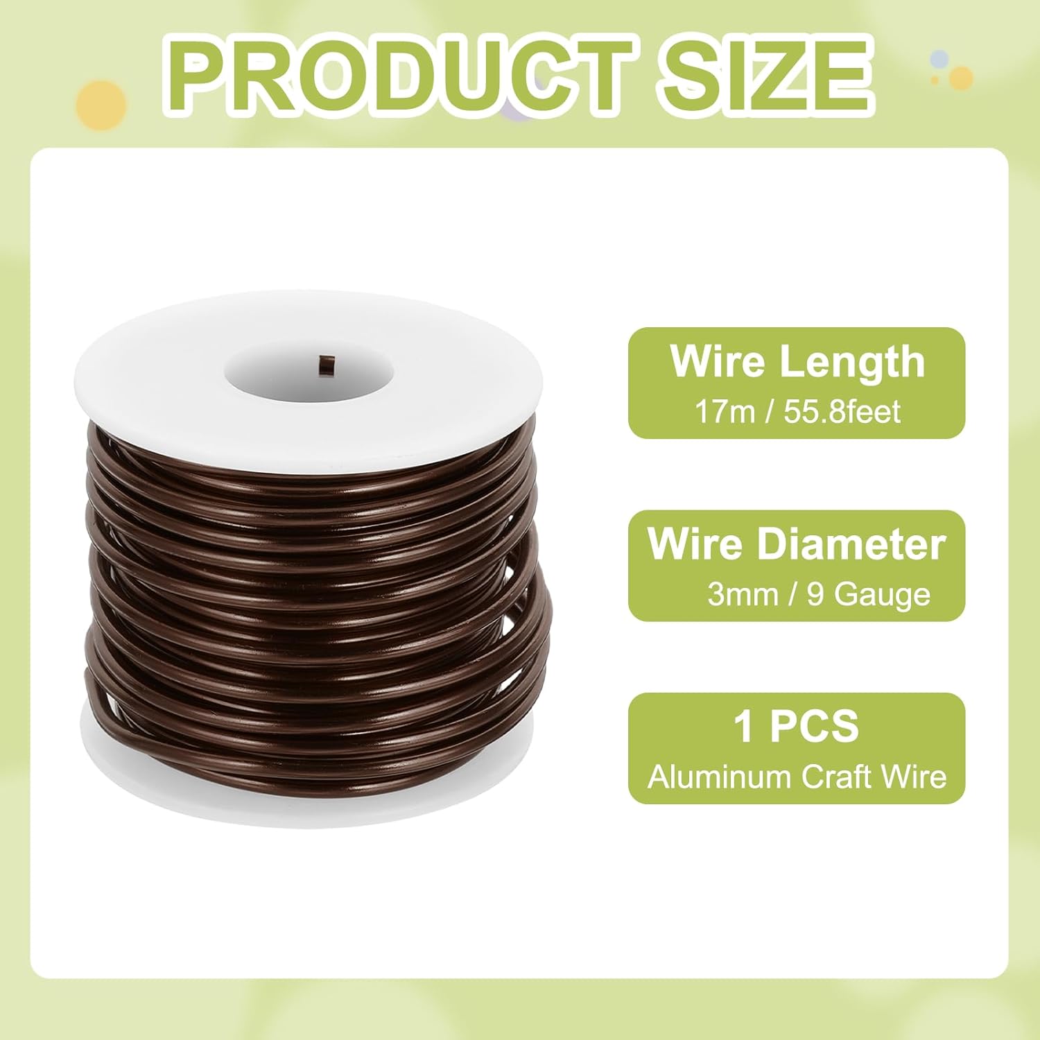 MECCANIXITY 9 Gauge Anodized Aluminum Craft Wire Bendable Bonsai Training Wire 56 Feet 3mm for Sculpting Crafts Wreath Floral Beading Jewelry Making, Brown