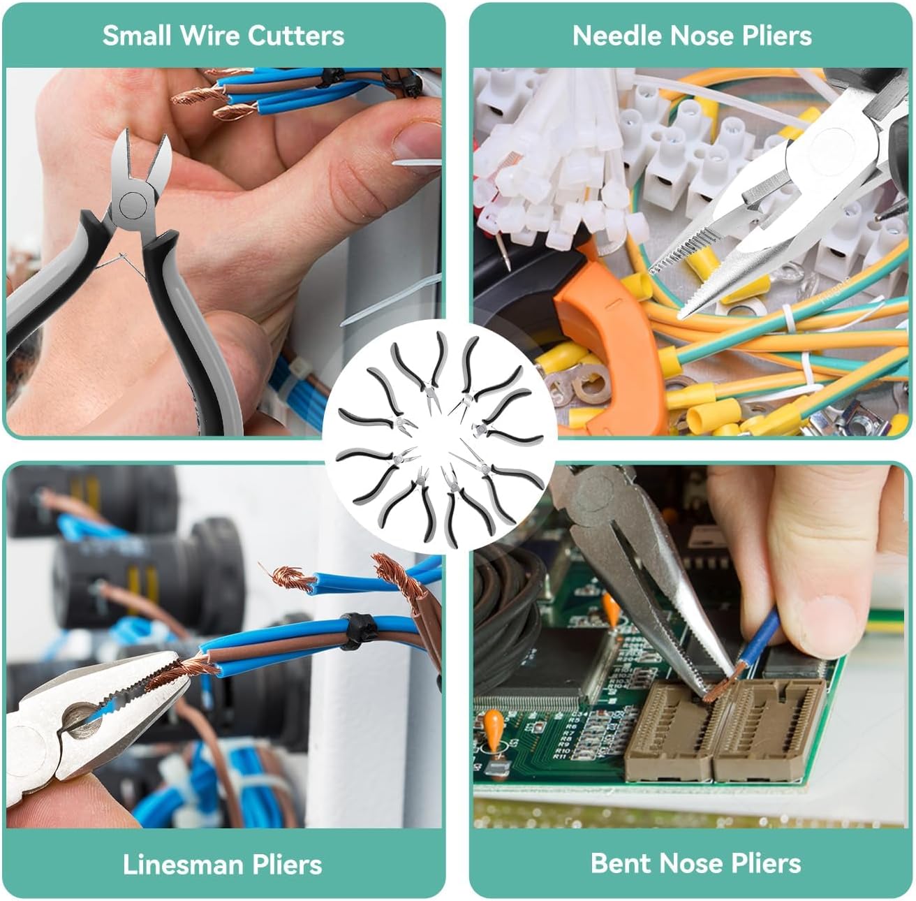 - Compact, Portable & Space-Saving: All 8 mini-sized pliers fit neatly into a sleek, lightweight carrying case, making storage and travel a breeze. The compact design maximizes portability without compromising functionality—ideal for tight spaces or mobile repair kits.