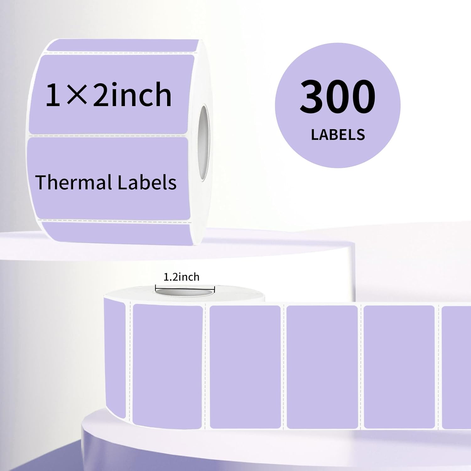 2x1 Inch Thermal Labels, Purple Thermal Printer Stickers, Waterproof Self-Adhesive Shipping Label Printer Sticker for Barcode, Name, Address, 300 Labels/Roll