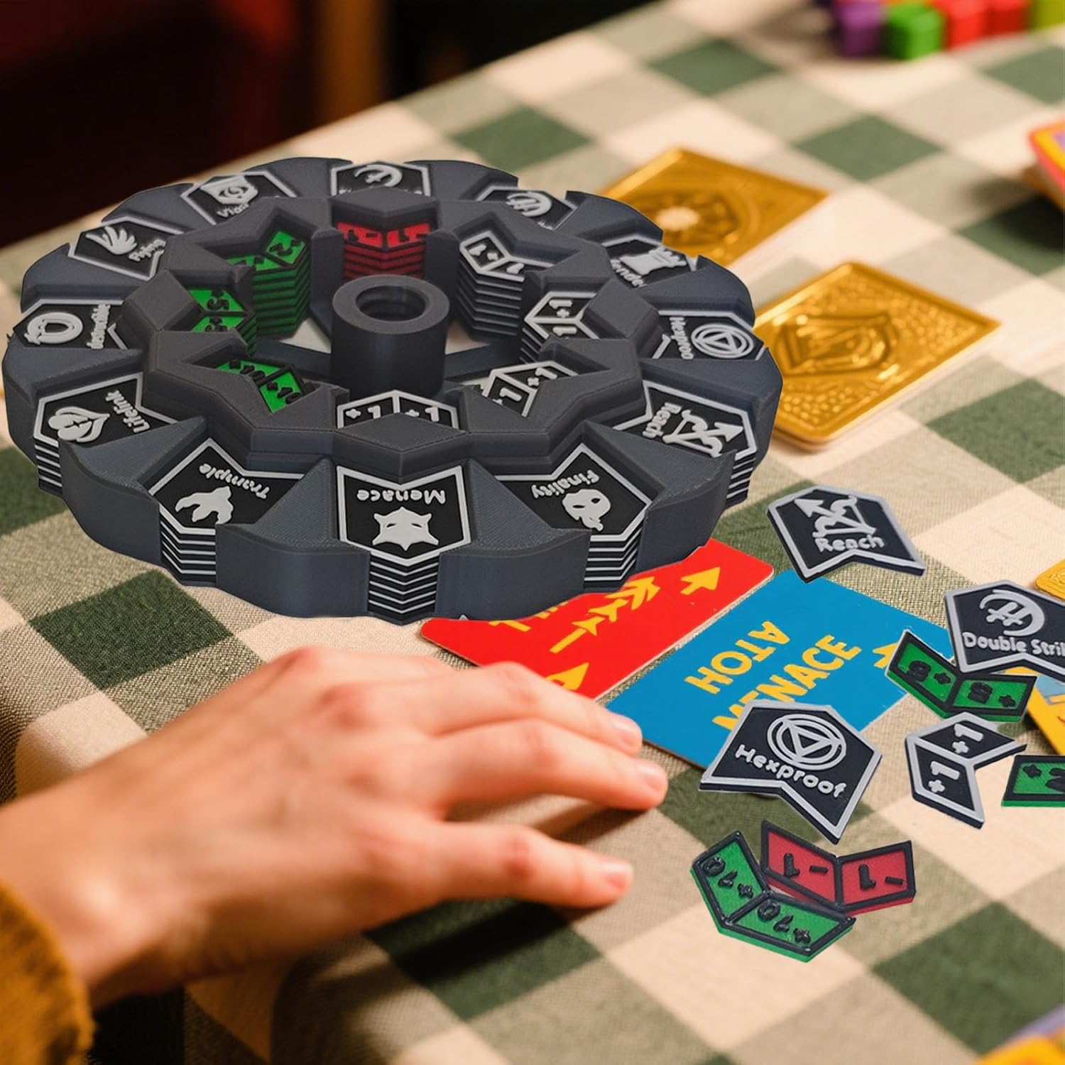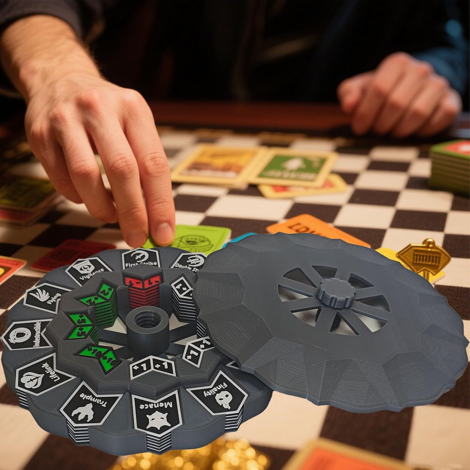 - ORGANIZATION SYSTEM: TCG abilities keywords counter wheel Keeps counters neatly organized and readily accessible duringgameplay, with clear icons and symbols for quick identification. Helps track complex board states efficiently, reducing errors and keeping matches running smoothly.