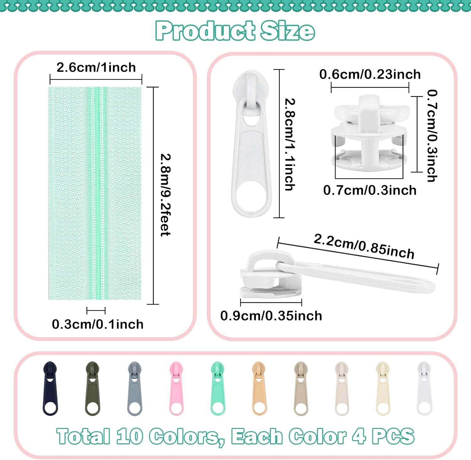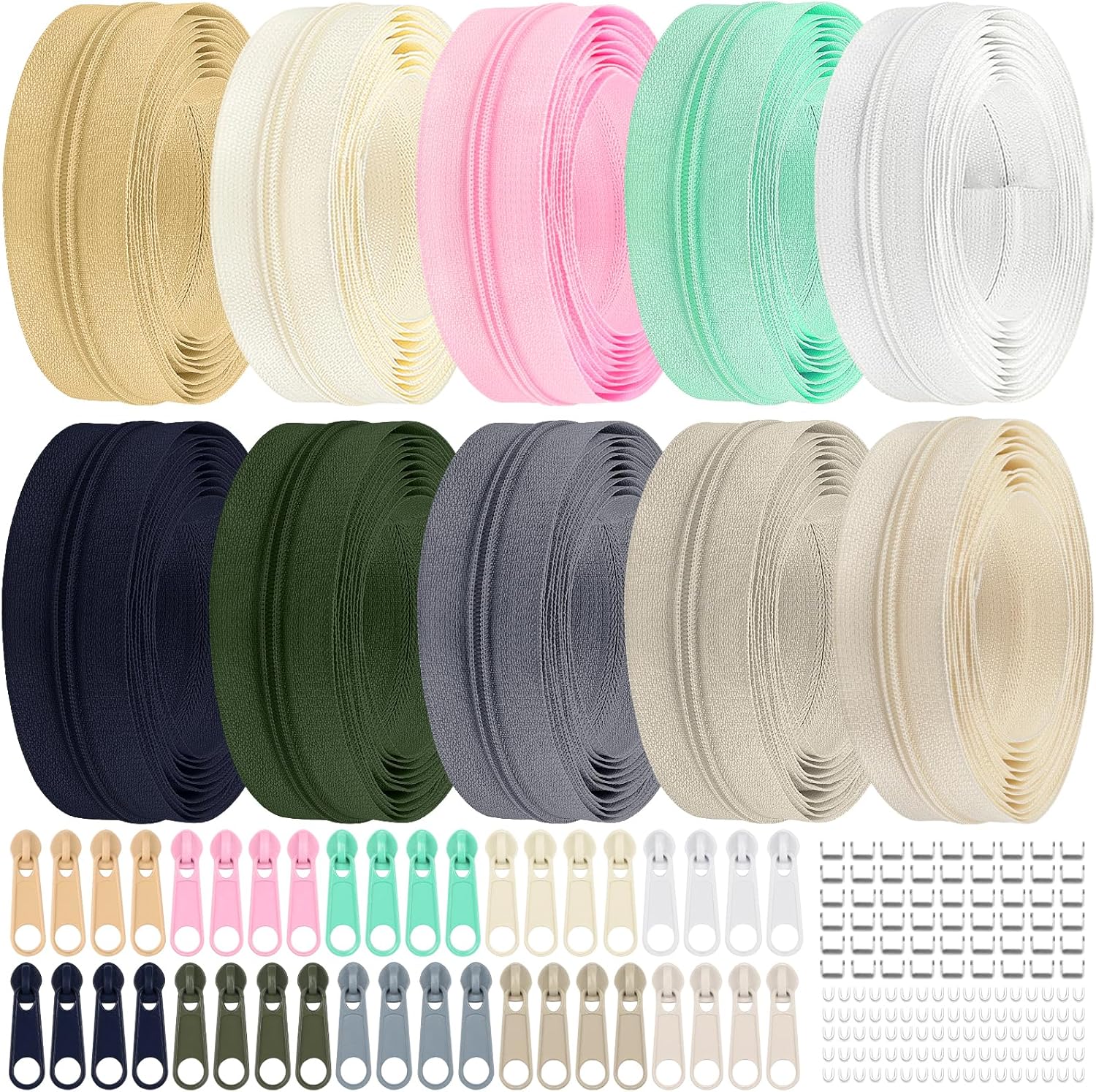 - Adequate to Meet Your Needs: you will receive about 31 yards of nylon coil zipper rolls in 10 different colors, per color a roll and 3.1 yards per roll, come with 40 zipper sliders and 4 per color, enough amount and colors can meet your need and replacements
