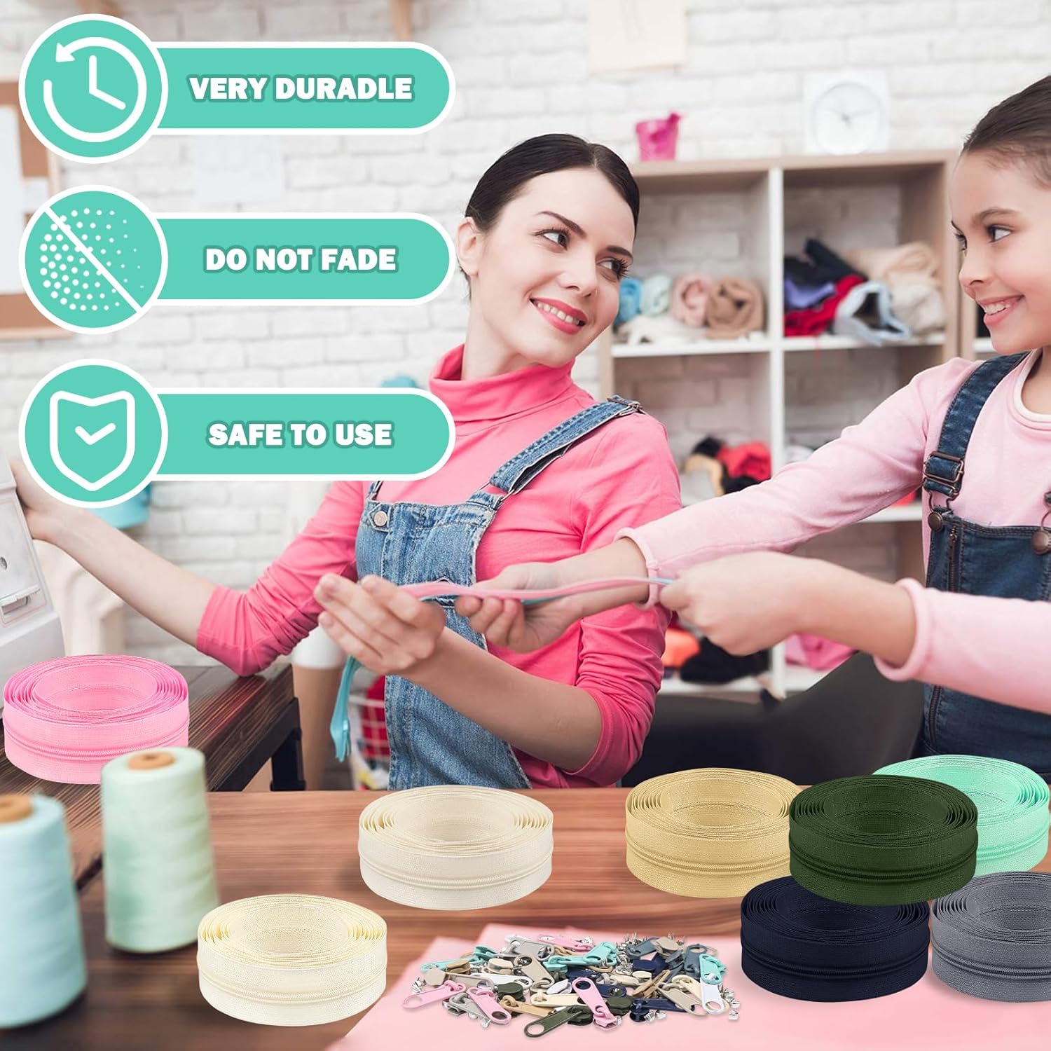 - Multi-function: long enough, multi-purpose use, can be used in Western skirts, dresses, can also be used in cushions, bag zipper, pet clothes, hand bags, cushion, pillowcase, handicraft, luggage, can also be decorated as colourful ornaments DIY products.