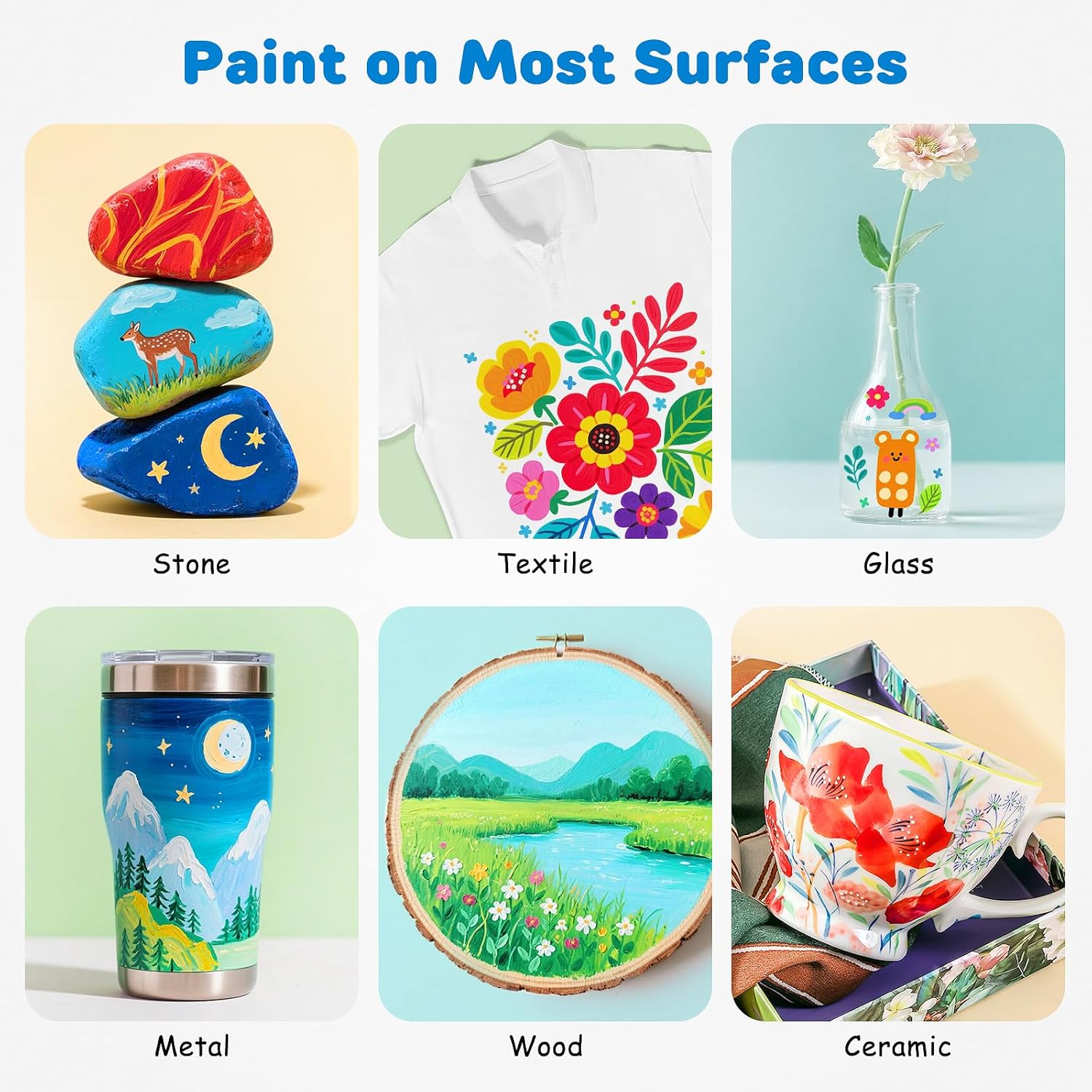 - Most Surfaces Adoptable: This marker pen can cover almost all common materials in daily life - stone, wood, glass, ceramics, metal, cloth, paper, canvas. They are great fabric markers and rock markers. Whether it is a rough stone surface, richly textured wood, smooth glass, easily dyed cloth, or paper and canvas that require fine depiction, it can easily "write", making every inch of the surface your creative canvas.