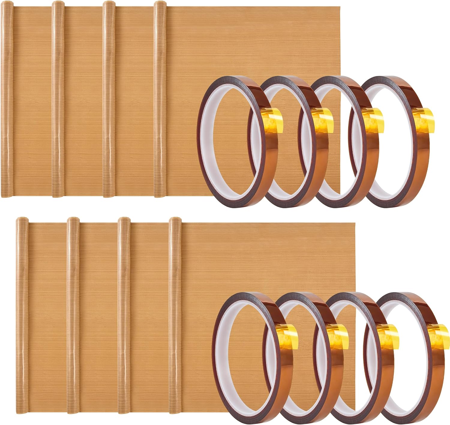 Teflon Sheets for Heat Press - 8 Pcs 16 in x 12 in Reusable and Non-Stick Teflon Paper with 8 Rolls Waterproof and Oilproof Heat Resistant Tape, No Residue with High Insulation for Printing