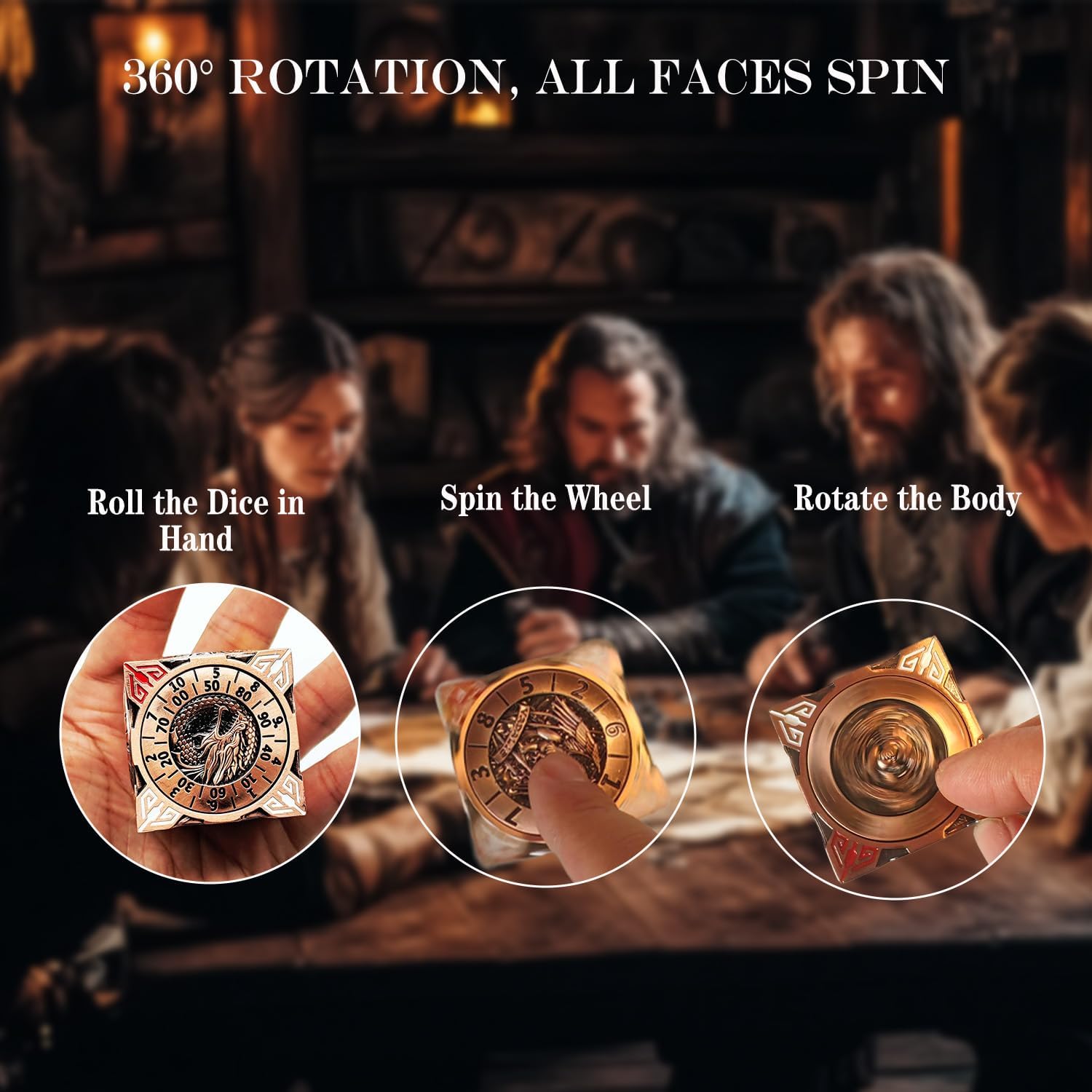 6 Sided Spinner DND Dice - Metal D4 D6 D8 D10 D10% D12 D20 All in One D&D Set - Cool Role Playing Gifts for Dungeons and Dragons TRPG MTG Games Lover Players Red Copper