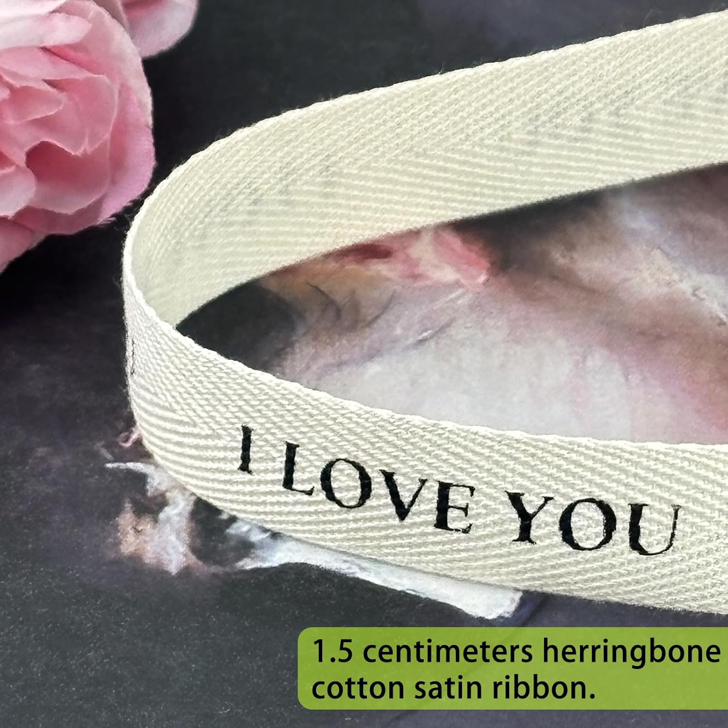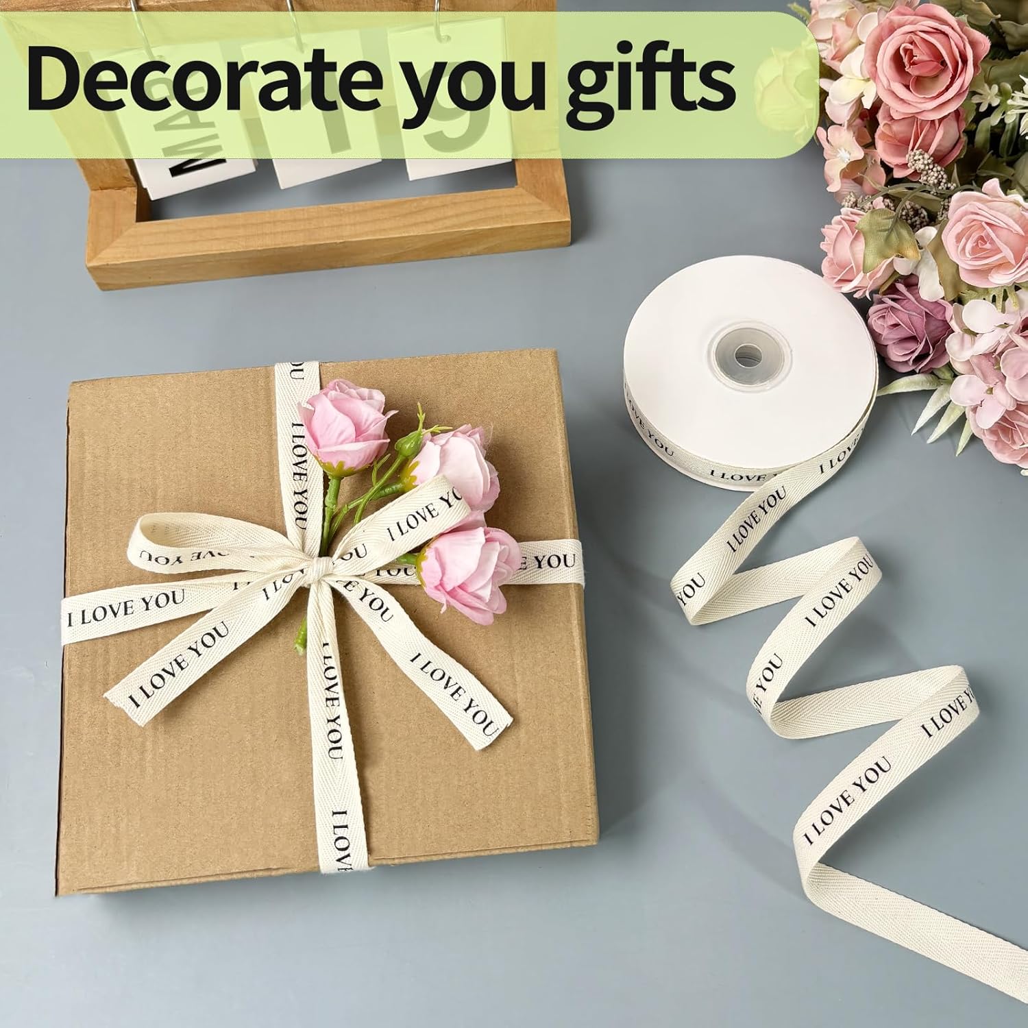 Cotton Herringbone Ribbon - Natural Twill Tape for Custom Gift Wrapping & DIY Crafts-5/8 Inch x 15 Yards - I Love You Printed Phrase