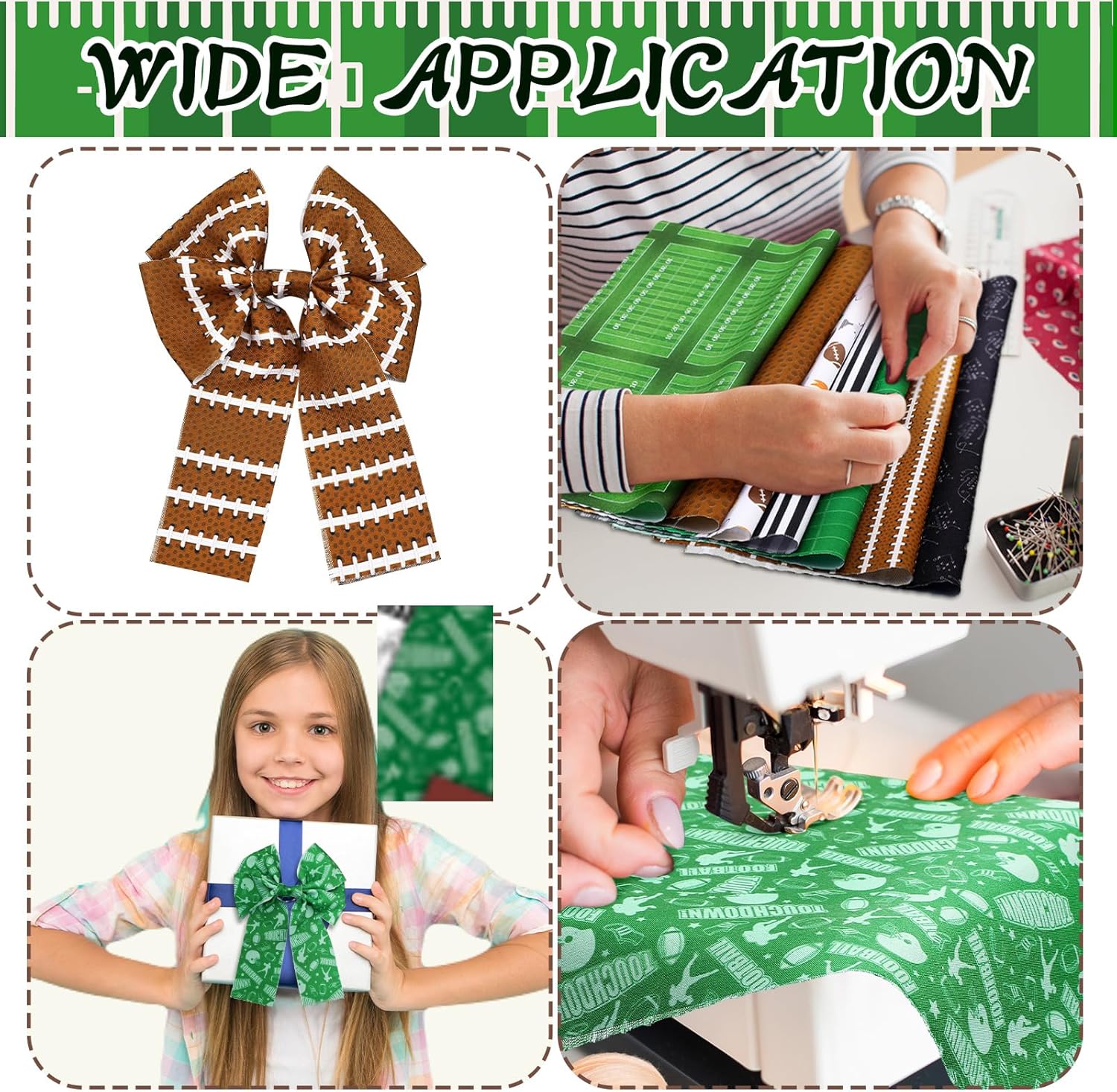 Ganeen 60 Pcs 10 x 10 Inch Football Quilting Fabric Squares Vintage Football Fat Patchwork Precut Strips Retro Green and Brown Fabric Bundles for Holiday DIY Craft Sewing Quilt Material Handmade
