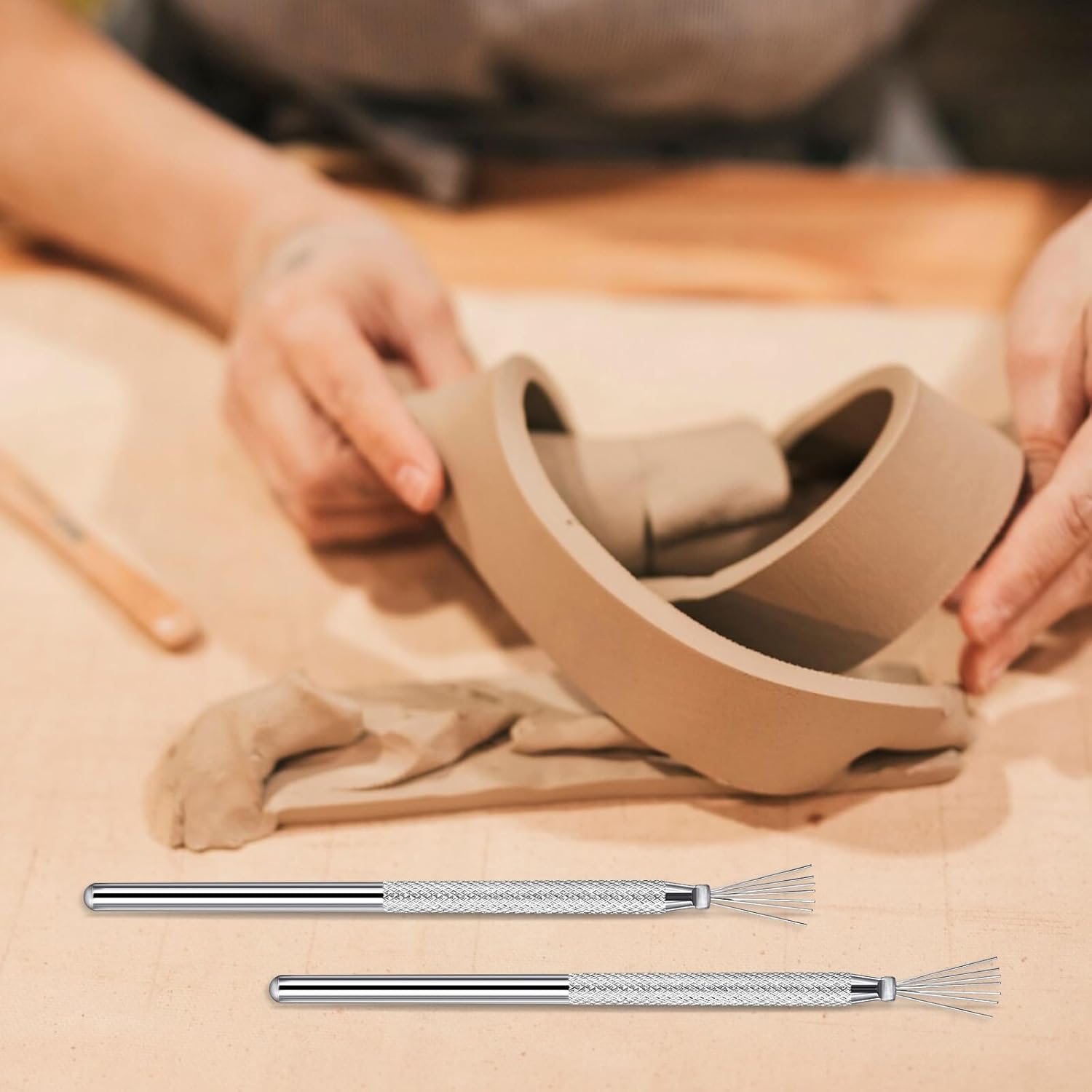 - 【High Quality Materials】Pottery texture tools are made of high-quality aluminum, the special thread tool uses aluminum handle and stainless steel bristles, sturdy and easy to clean