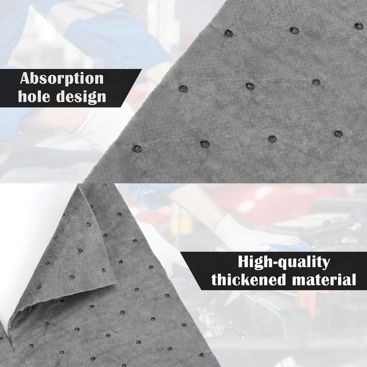 - Superior Absorption & Oil Lock Performance: Features multiple absorption hole design, our oil absorbent pads serve double duty as versatile water absorbent pads and water absorbing mats. A hydrophobic top layer repels water while the melt‑blown core targets oil and oil‑based fluids only, prevent oil dripping, giving you precision cleanup of mixed spills. No more soggy mats—just efficient, targeted absorption for your oil mat every time.