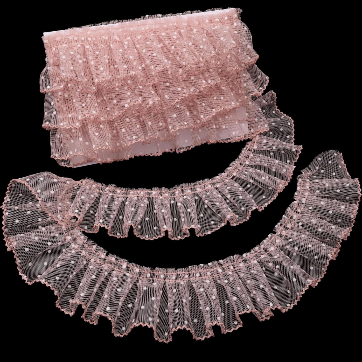 Dots Lace Ruffle Trim for Sew, Crafts 2.4" x5yd Single Layer Pleated Edge Lace Ribbon (Shellpink)