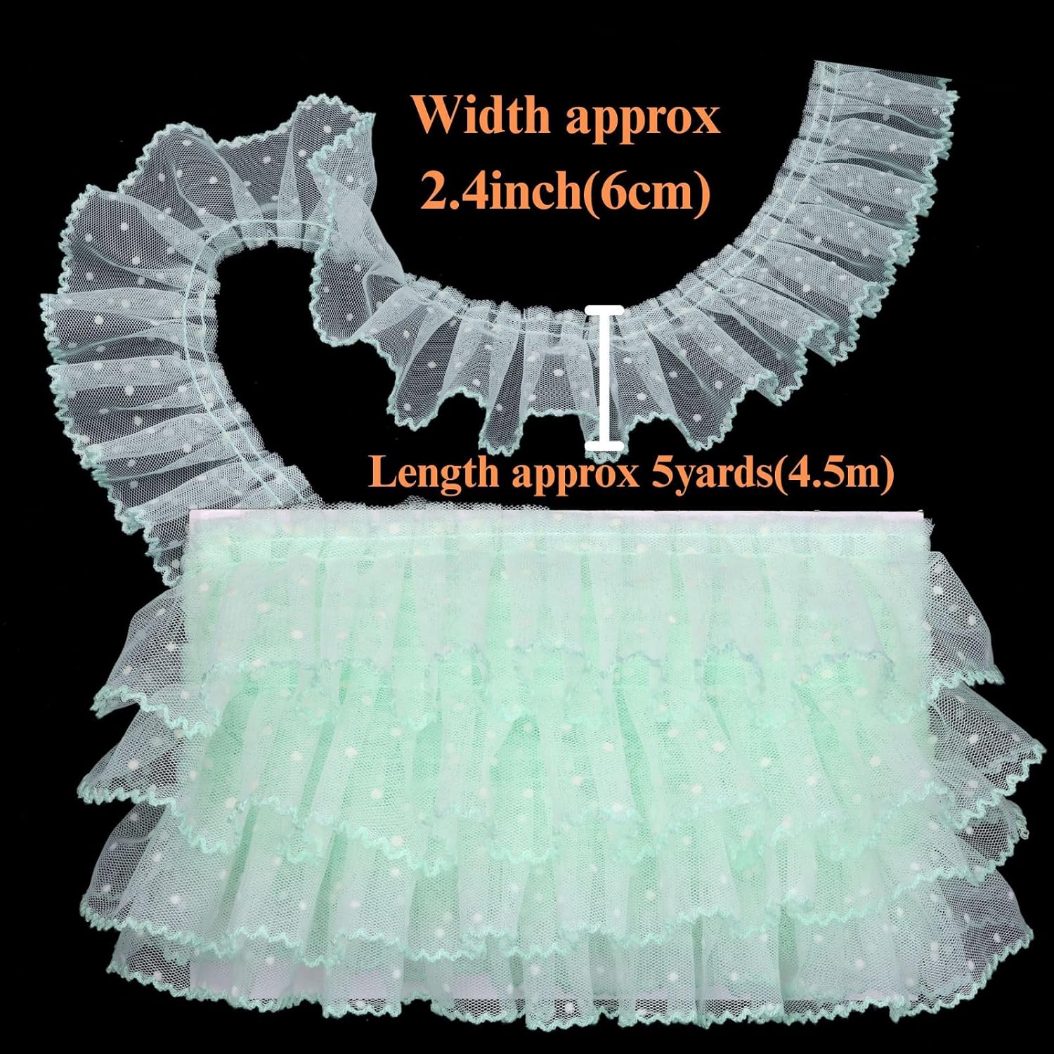 Dots Lace Ruffle Trim for Sew, Crafts 2.4" x5yd Single Layer Pleated Edge Lace Ribbon (Light Green)