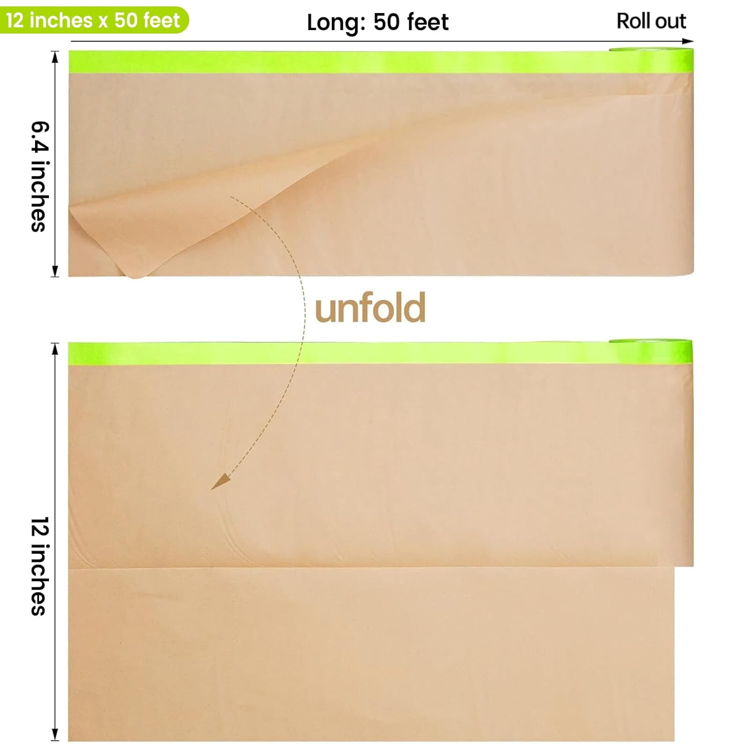 - 【Easy to Use & Convenient Size】Each roll measures 12 inch x 50 feet, lightweight and easy to tear by hand or cut with scissors. Simply unroll, stick, and cover – saves time and effort on masking. Package includes 3 rolls, enough for various home renovation and automotive projects.