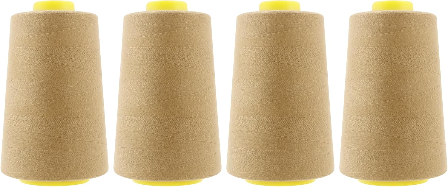 Mandala Crafts 4 Pack of Serger Threads Cones Spools - 40S/2 24000 Yards Polyester Khaki Threads for Sergers Machine and Overlock Quilting Sewing Machine