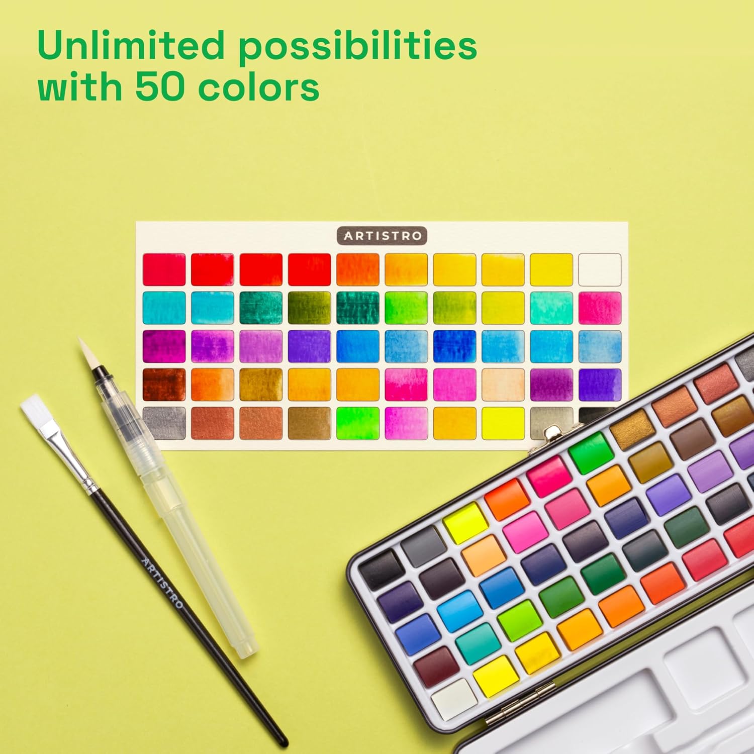 - 50 Vibrant Watercolor Shades: Artistro watercolor paint set includes 50 rich and vivid colors—perfect for beginners, students, and professional artists. Create everything from soft washes to bold, expressive artwork.