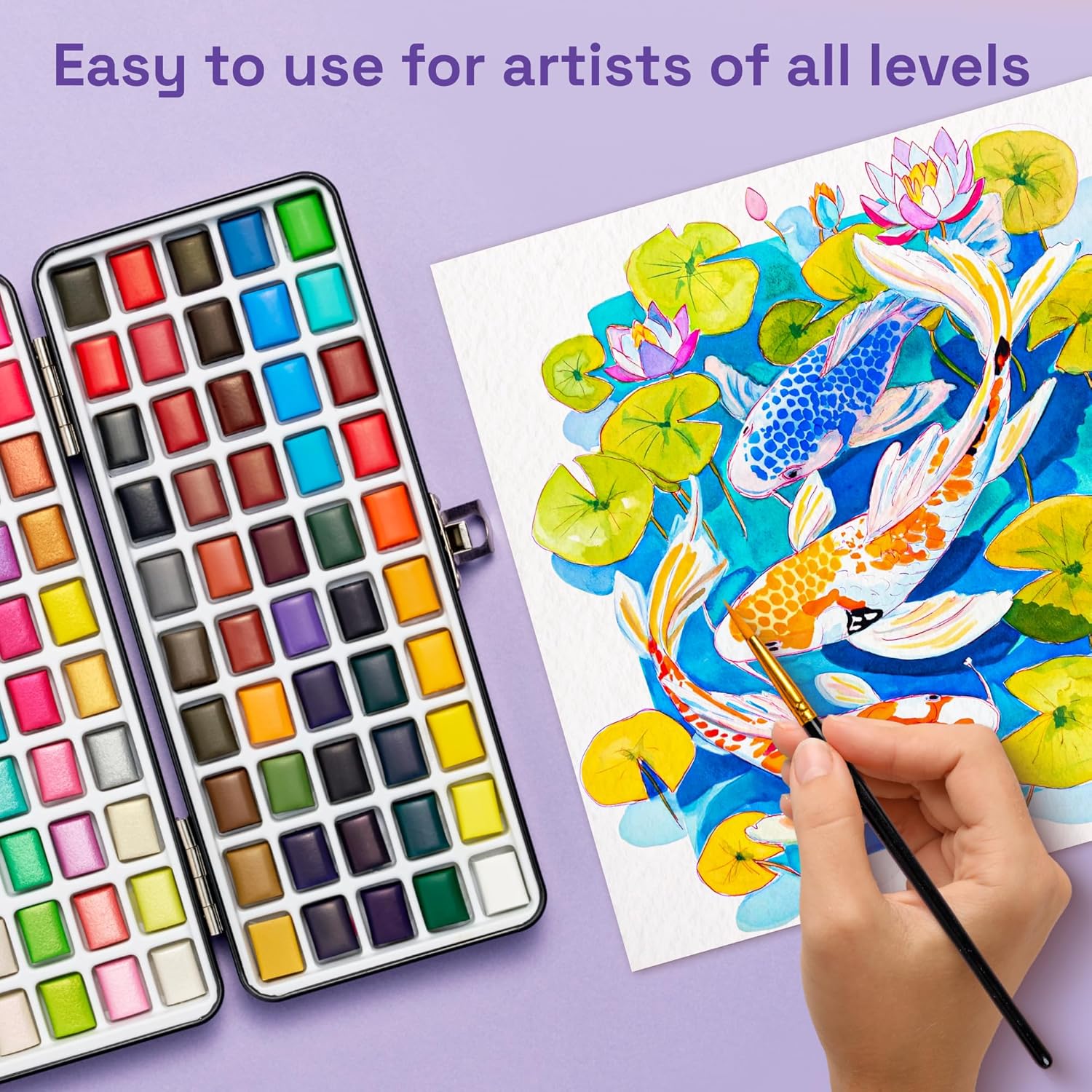- 100 Unique Watercolor Shades for Endless Creativity: Artistro watercolor set includes 100 vibrant colors—classic, metallic, macaron, and fluorescent. With such a wide palette, you can skip endless mixing and focus on creating stunning watercolor effects right away.