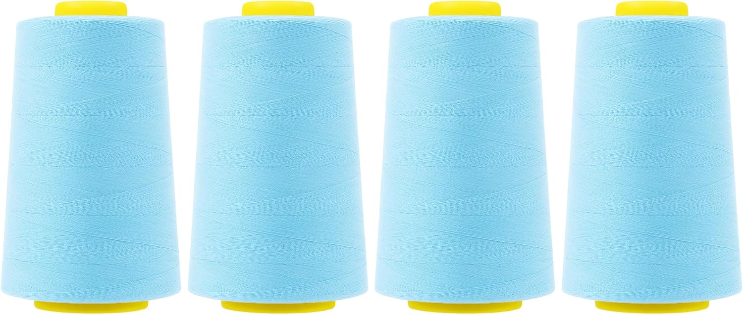 - Baby Blue Serger Thread Cones 4 Pack: The thread or hilos para coser is knot-free and non-stretch, serving as great baby blue all-purpose thread for sewing, serging thread, sewing machine threads, coverstitch thread, overlock thread, & longarm machine quilting thread.