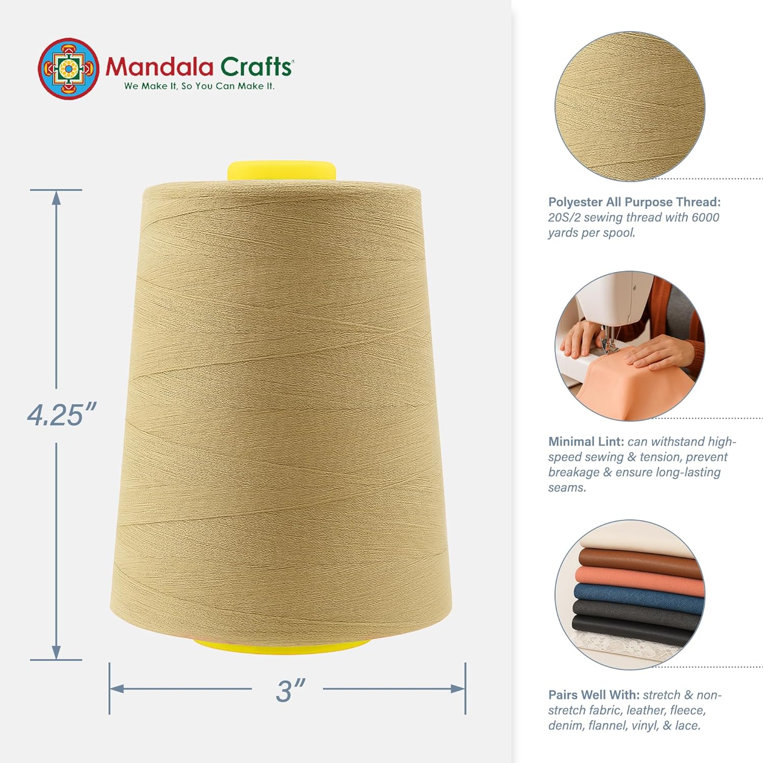 - Easy to Use Khaki Sewing Thread Cones: The khaki sewing thread lays flat and goes through loopers & needles without friction & yields clean lines. The serger sewing thread pairs well with stretch & non-stretch fabric, leather, fleece, denim, flannel, vinyl, & lace.