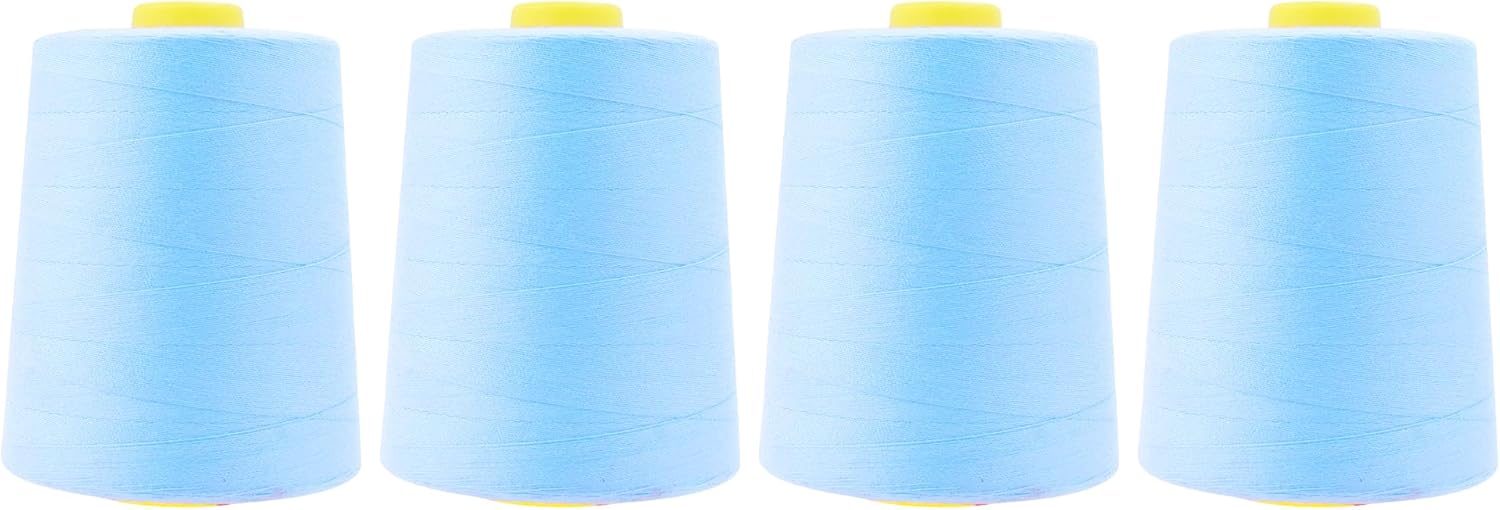 Mandala Crafts 4 Pack of Serger Threads Cones Spools - 20S/2 24000 Yards Polyester Ice Blue Threads for Sergers Machine and Overlock Quilting Sewing Machine