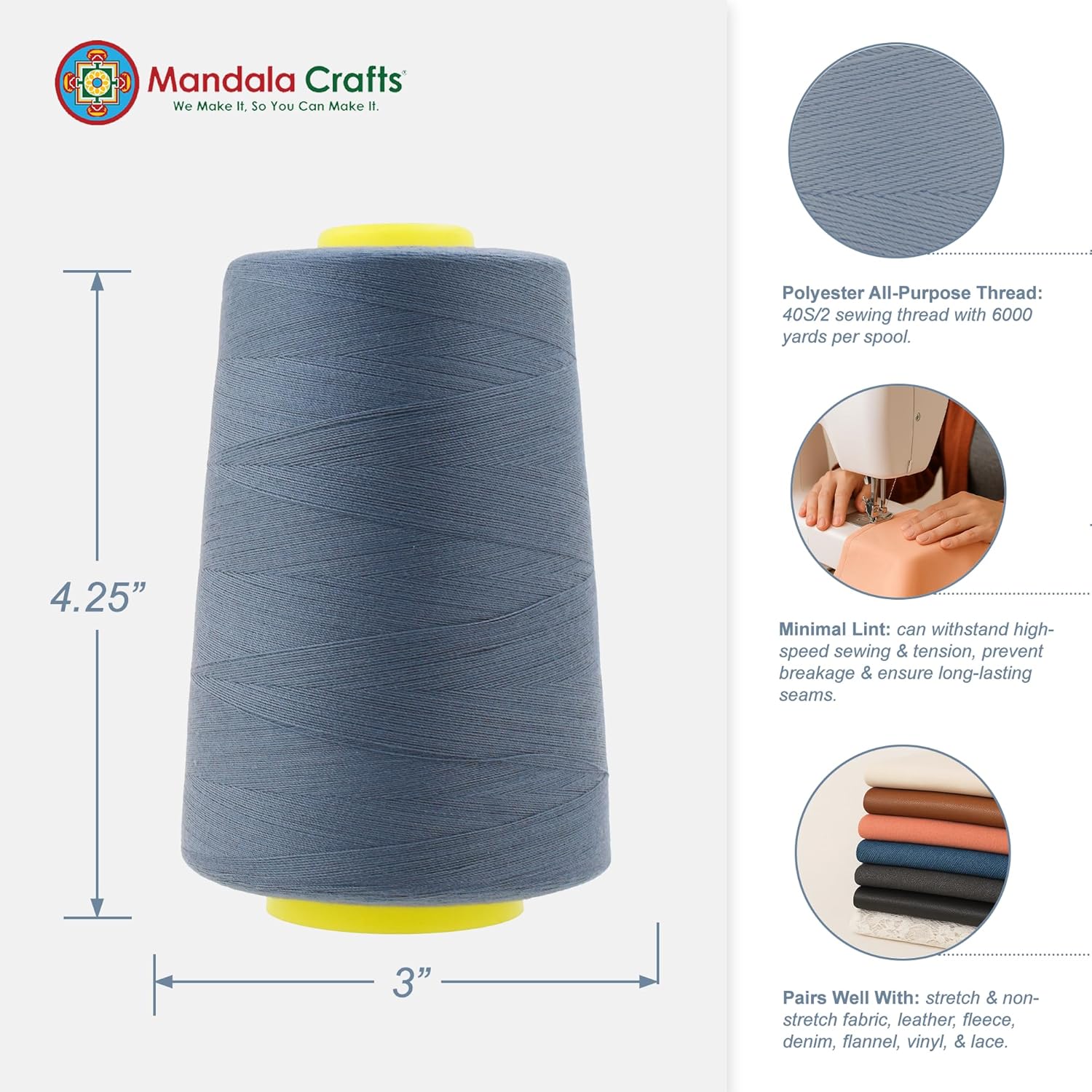 Mandala Crafts 4 Pack of Serger Threads Cones Spools - 40S/2 24000 Yards Polyester Slate Gray Threads for Sergers Machine and Overlock Quilting Sewing Machine