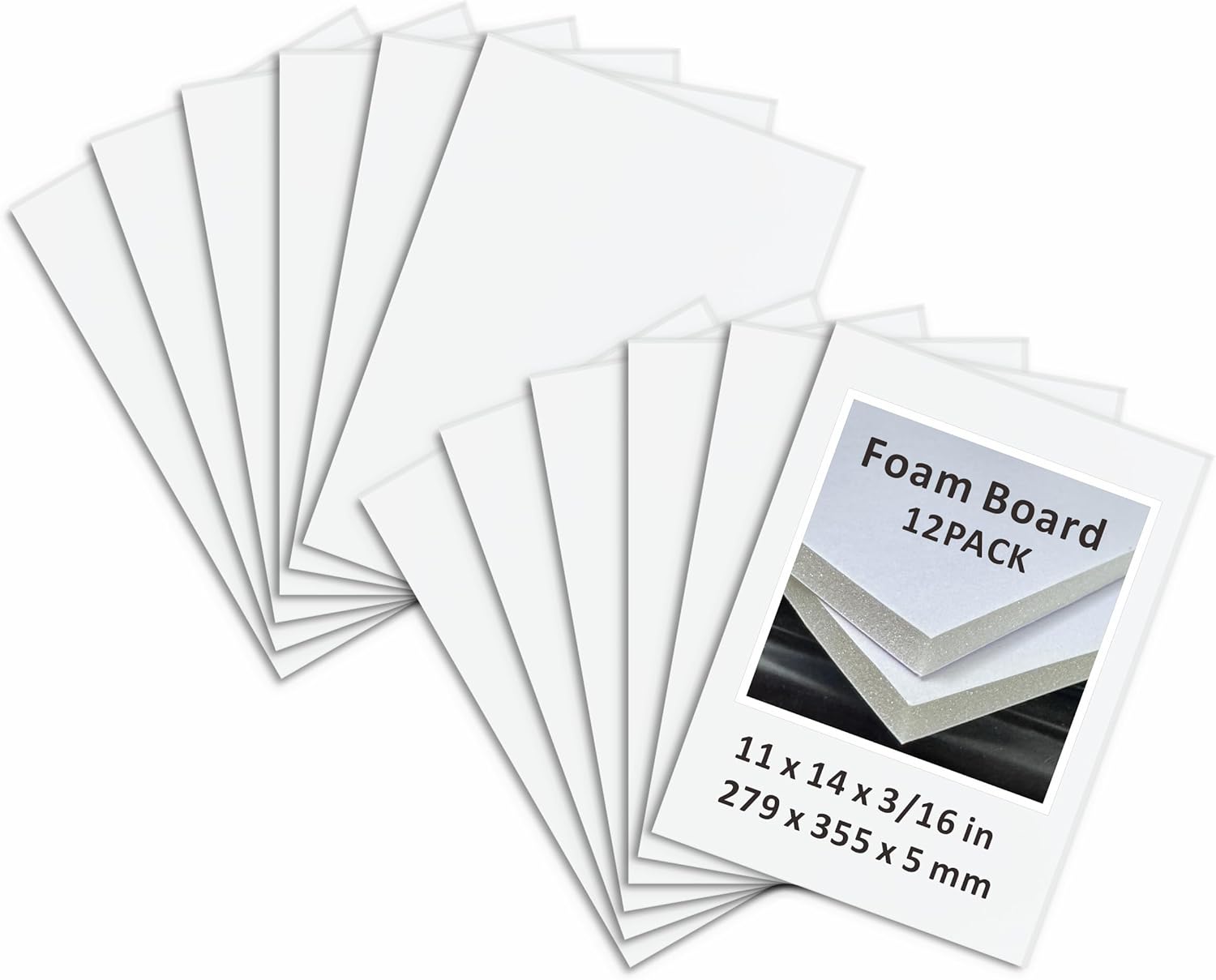 Foam Board 11 x 14 in, ZXUNLIEH 12 Pack White Poster Board, 3/16 in Thick Craft Foam Core Board, Puzzle Board, Double Sided, Foam Sheets for Picture, Project, Presentation, Artwork, Signage and Crafts