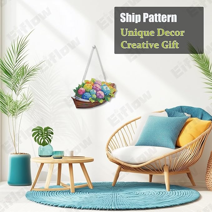 Eiflow Acrylic Diamond Art Hanging Ornament Kit for Adults Hydrangea Flower, DIY Diamonds Painting Door Hanger Board Kit, Special Crystal Diamond Art Painting Pendant