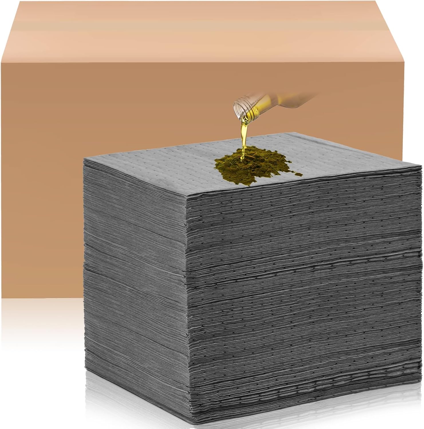 Hoolerry Oil Absorbent Pads Weight Dimpled Pad Garage Accessories Water Absorbent Mat Oil Spill Mat for Absorbing Protecting Home Garage Basement (13.5 x 17.5 Inch,Gray,200 Pcs)