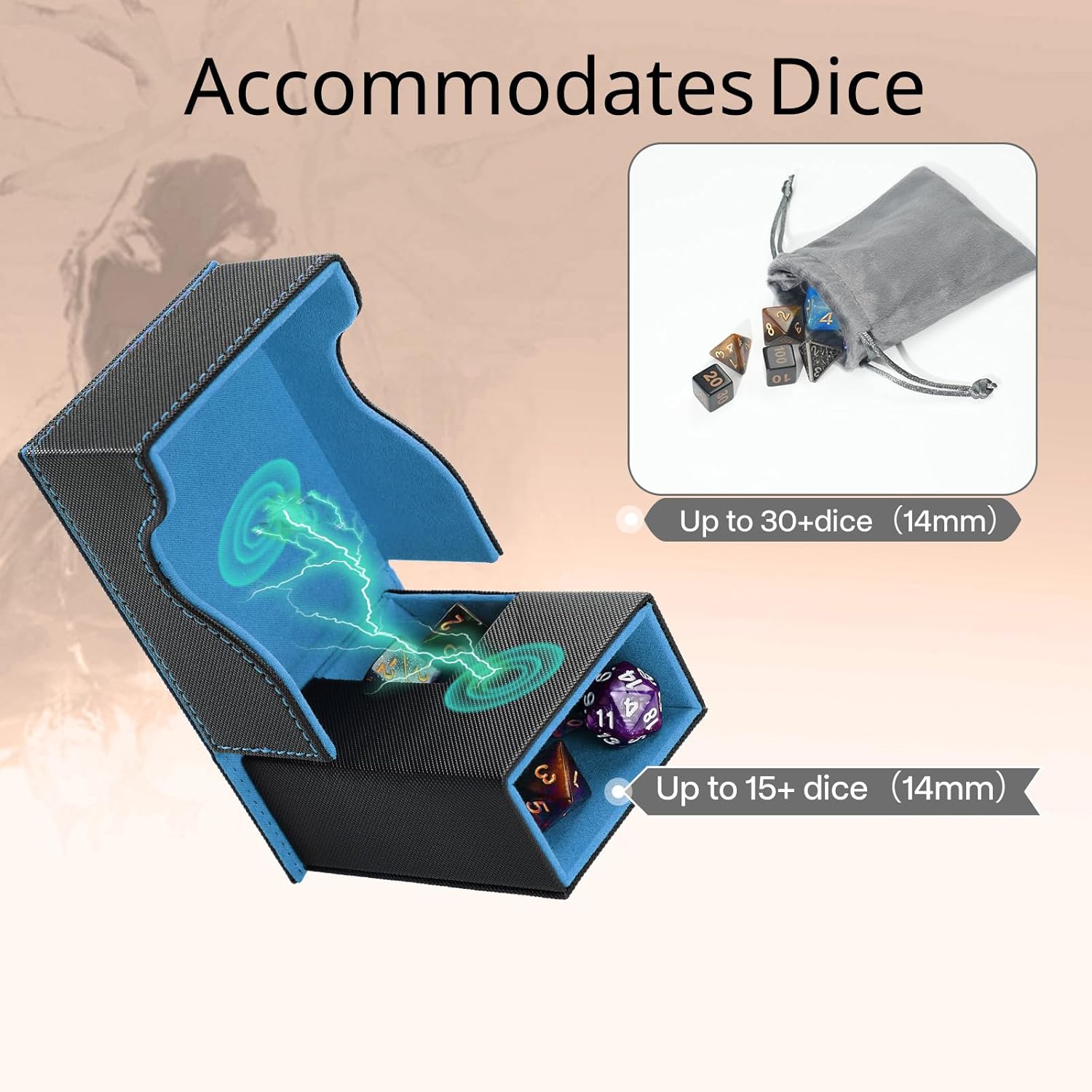Dice Tower and Tray, Portable Commander Deck Box, Foldable Dice Storage Box for Dungeons and Dragons Rolling Tray Black/Blue