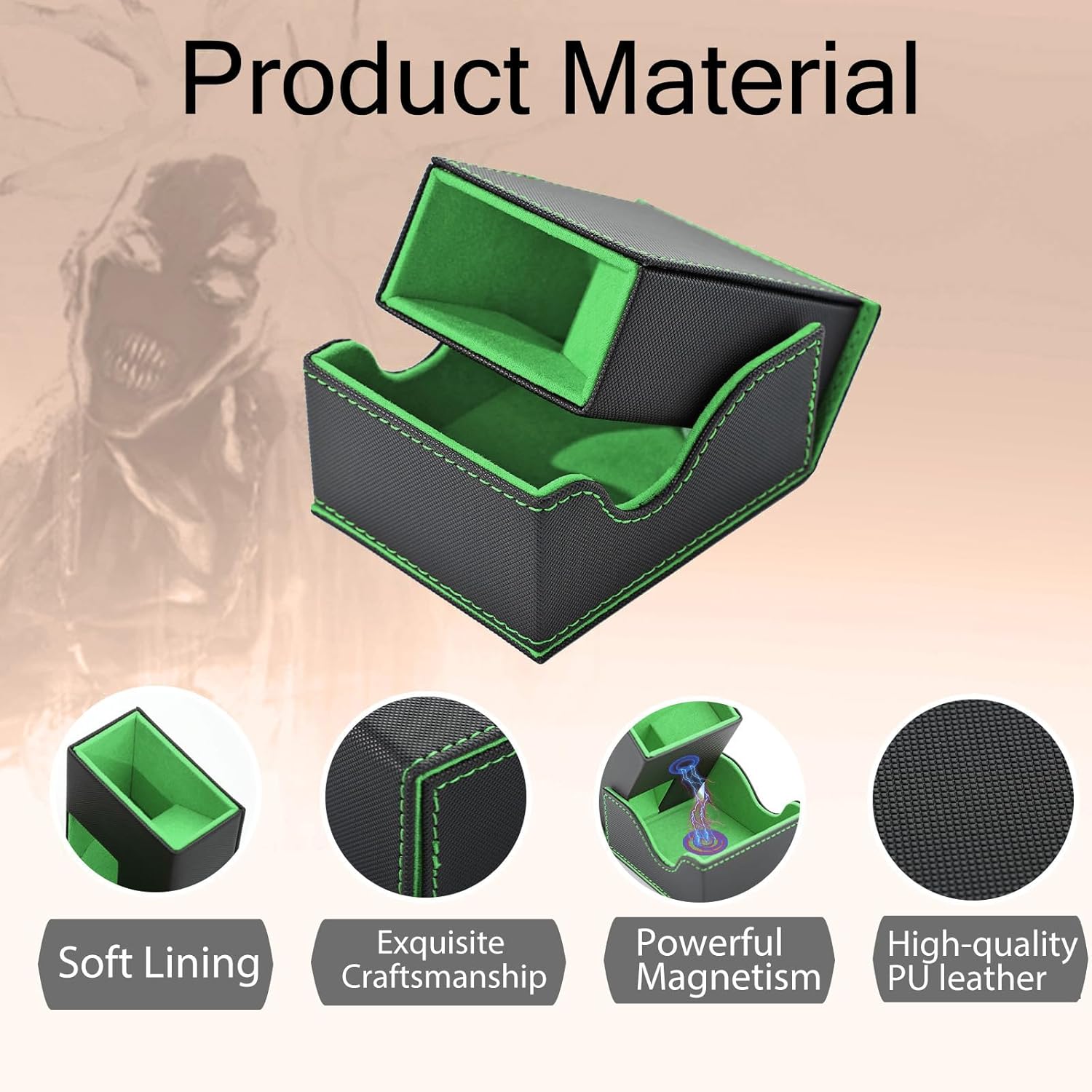 Dice Tower and Tray, Portable Commander Deck Box, Foldable Dice Storage Box for Dungeons and Dragons Rolling Tray Black/Green
