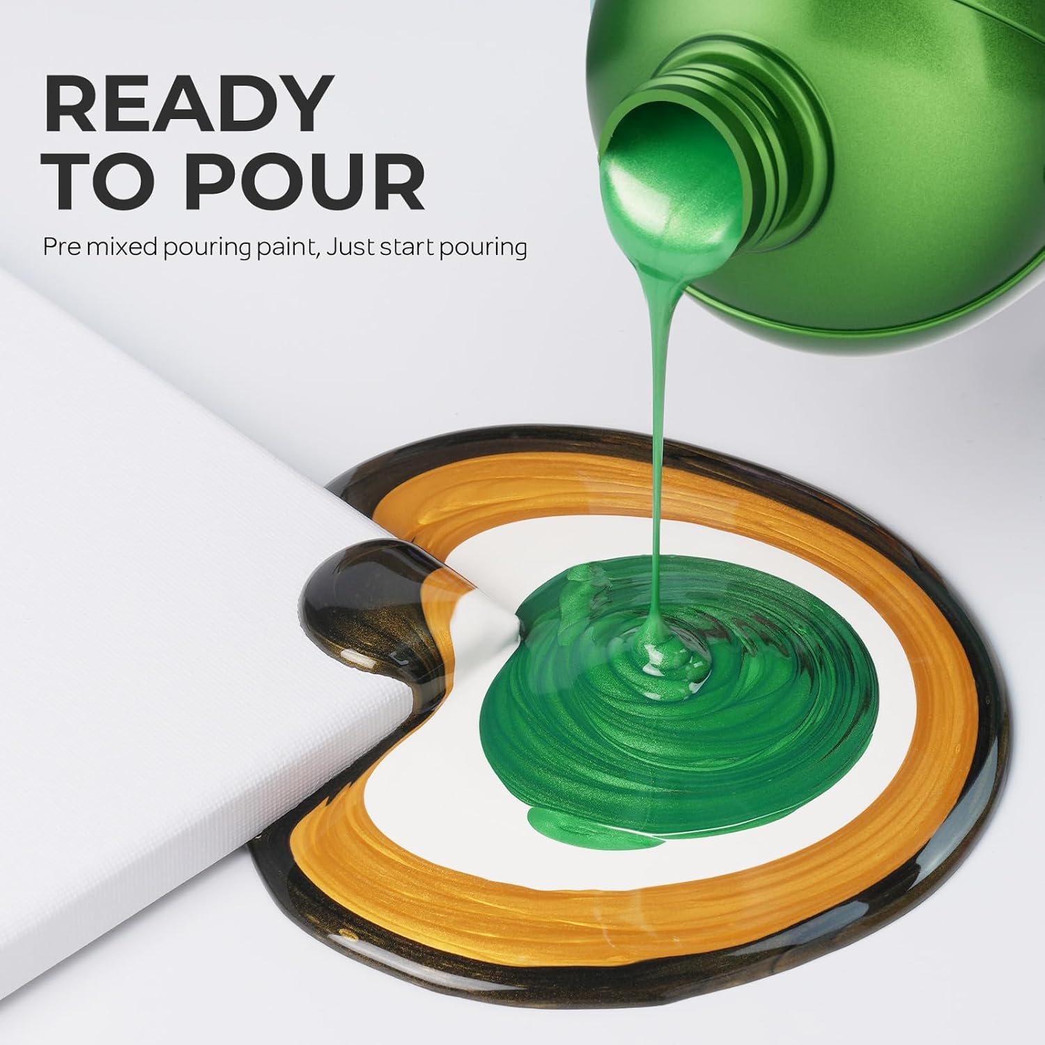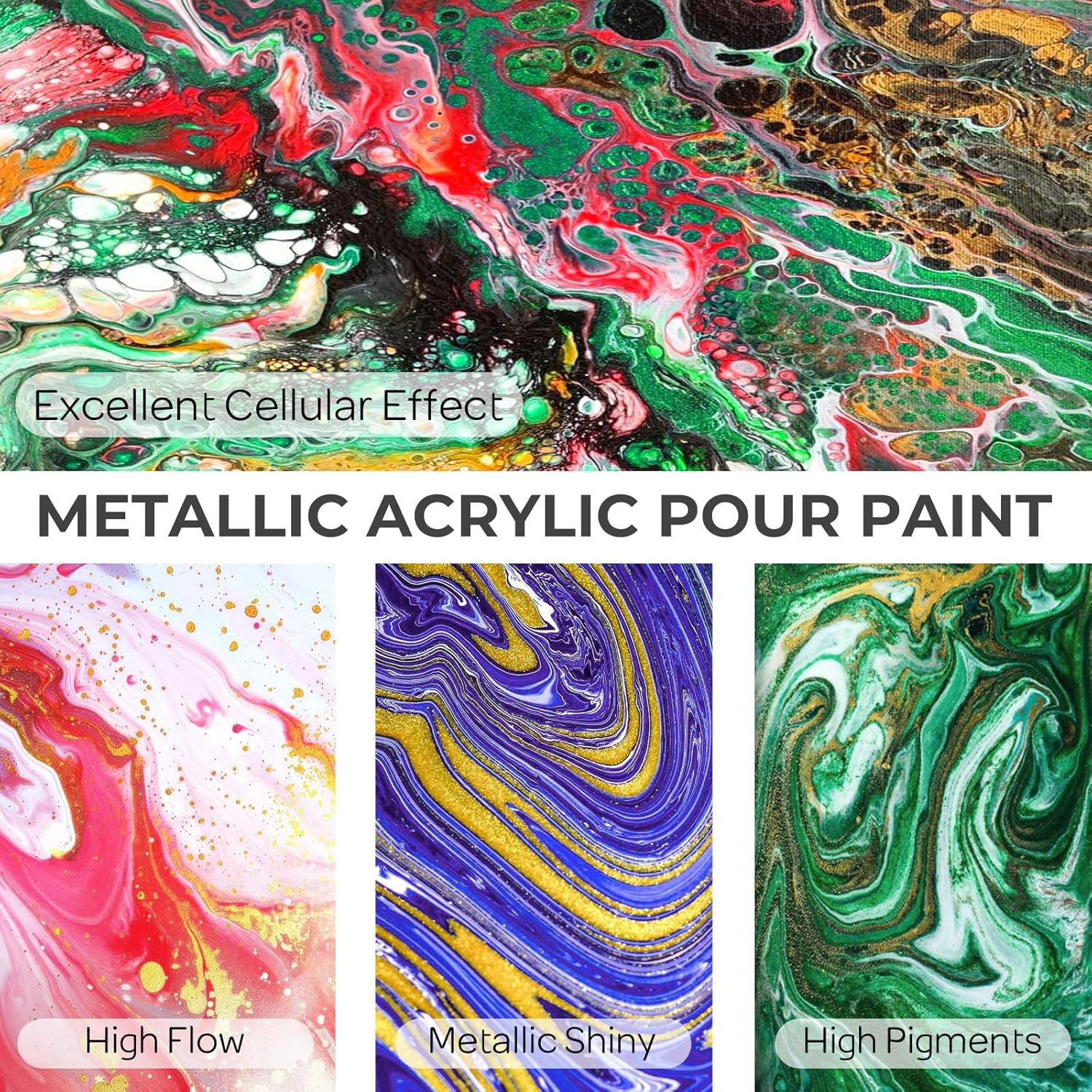 - Expressive Iridescent Colors: This set includes 8 large bottles of metallic acrylic pouring paint, each containing 1000ml / 33.08oz, perfect for beginners, extensive projects, and daily practice. It comes with silicone pour oil, 50 pairs of gloves, and tablecloths, allowing you to start creating anytime, anywhere