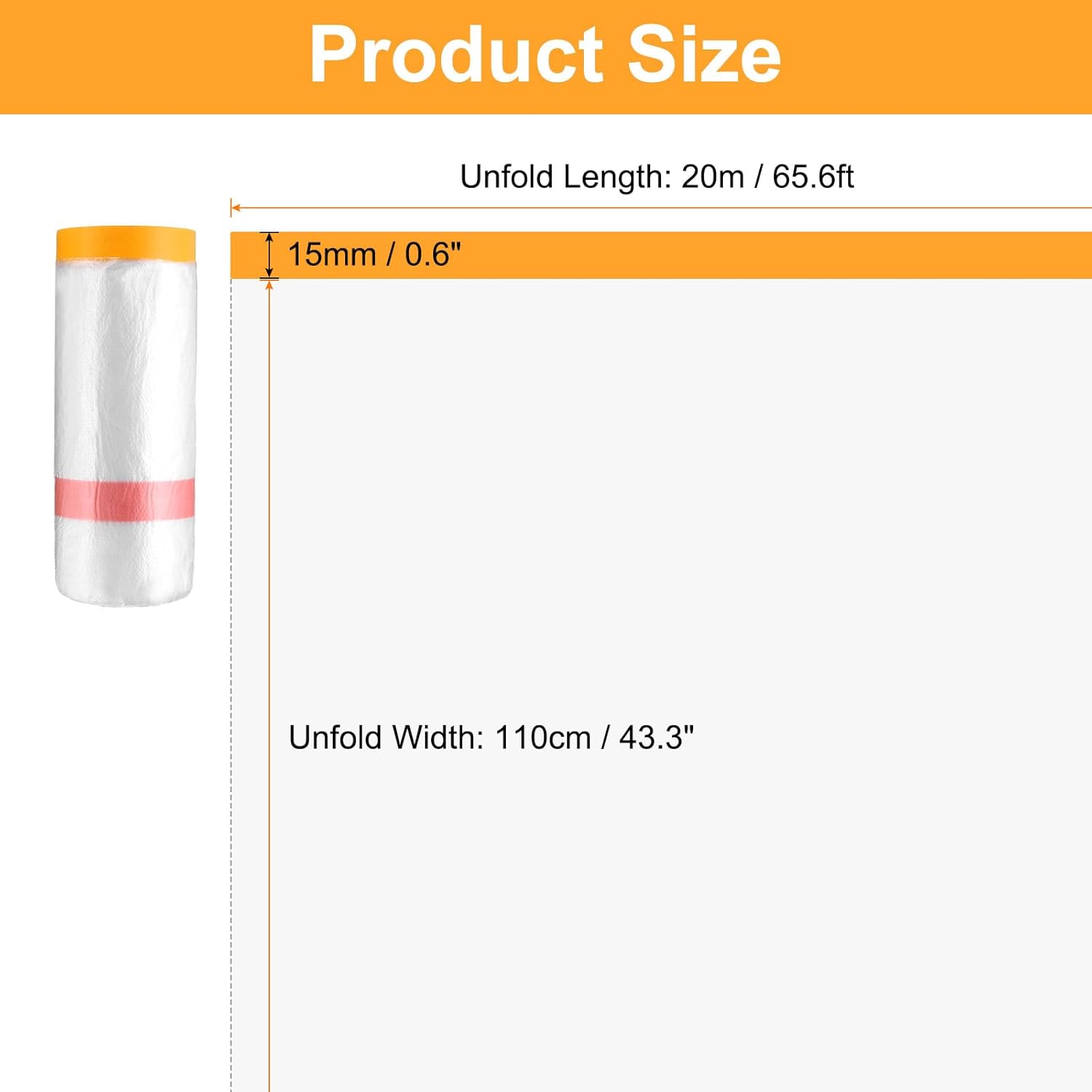 HARFINGTON Pre-Taped Masking Film 43.3" x65.6ft Double Adhesive Tape and Drape Painters Plastic Drop Cloth Film with Tape Plastic Sheeting for Automotive Painting Covering