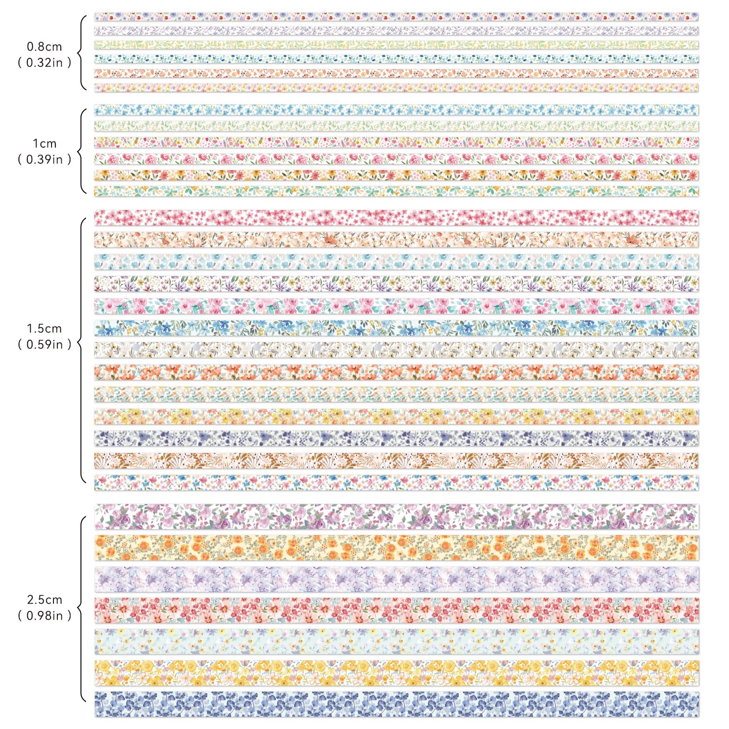 - š 32 Rolls floral designs--32 Rolls Washi Tape, 0.31 inch(8mm)wide x 6 Rolls, 0.39 inch(10mm) x 6 Rolls, 0.59 inch(15mm)wide x 13 Rolls, 0.98 inch(25mm) x 7 Rolls, each roll is 2m. 32 different patterns, this oil painting washi tape adds color and vitality to the pasted items, making daily life more interesting.