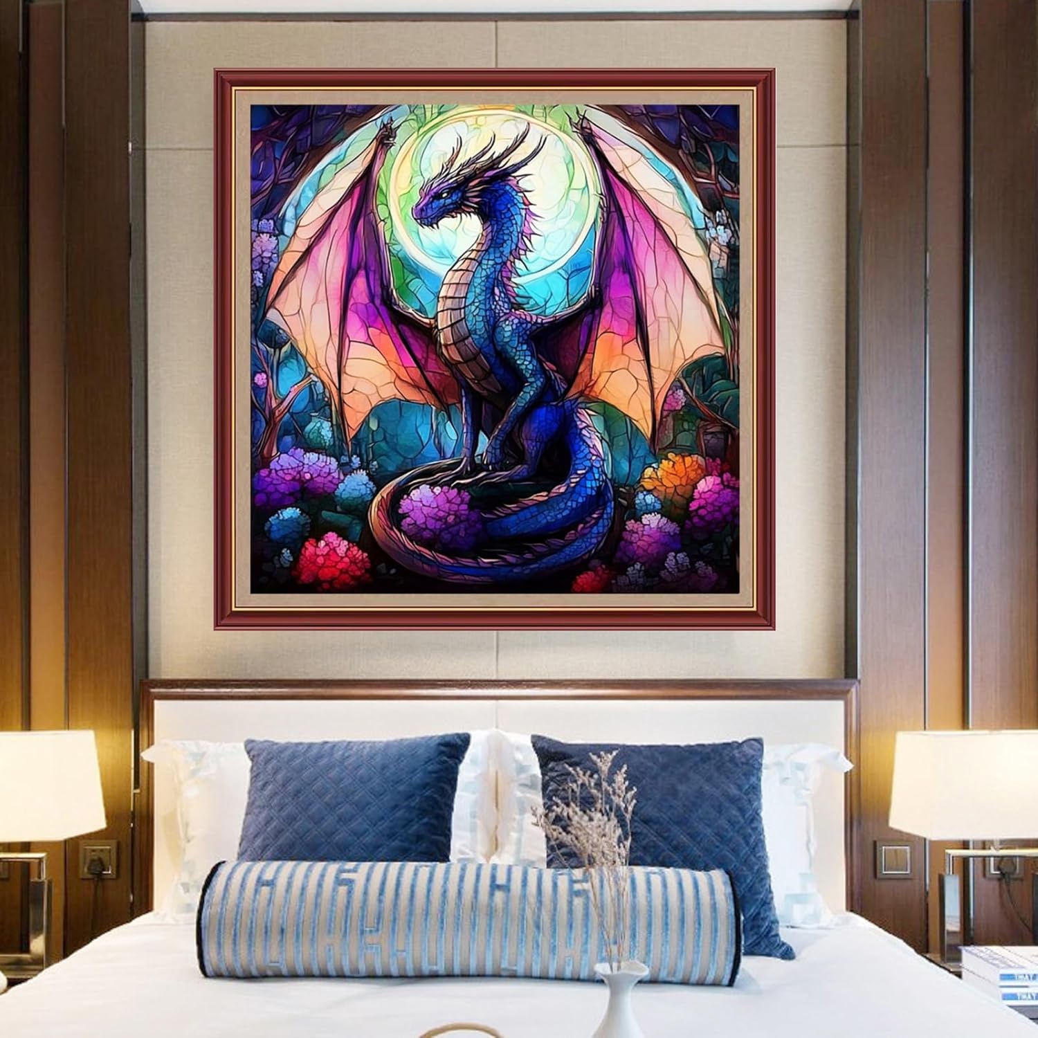 DMCXART Counted Cross Stitch Kits for Adults Needlepoint Kits Unprinted Cross Stitching Embroidery Kit 11CT Cross Stitch Supplies-Magic Dragon Flower 18x18 inch
