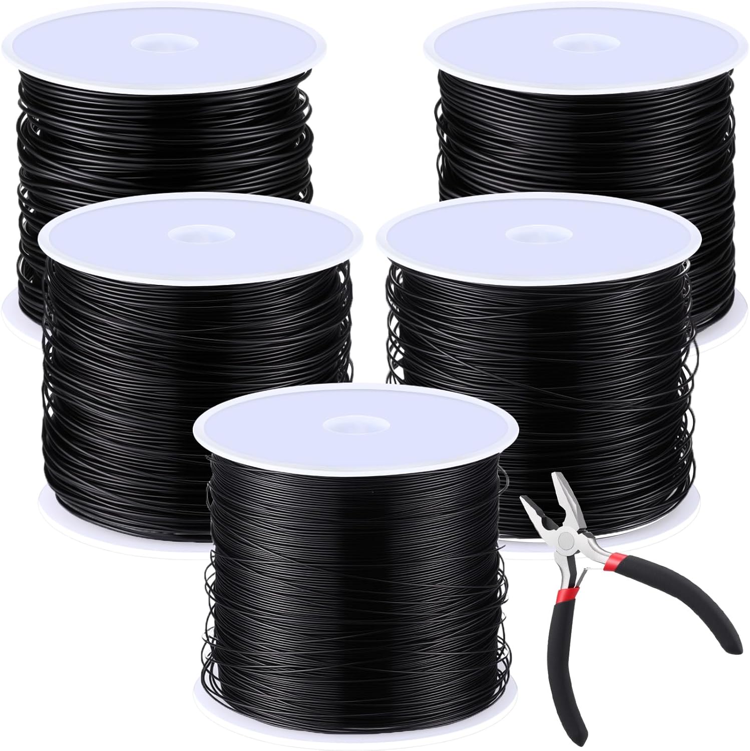 Funrous 5 Rolls 5 Size Jewelry Wire 18, 20, 22, 24, 26 Gauge Copper Wire Kit Jewelry Beading Bendable Craft Metal for Making Crafts, Sculpting with a Pliers (Black)