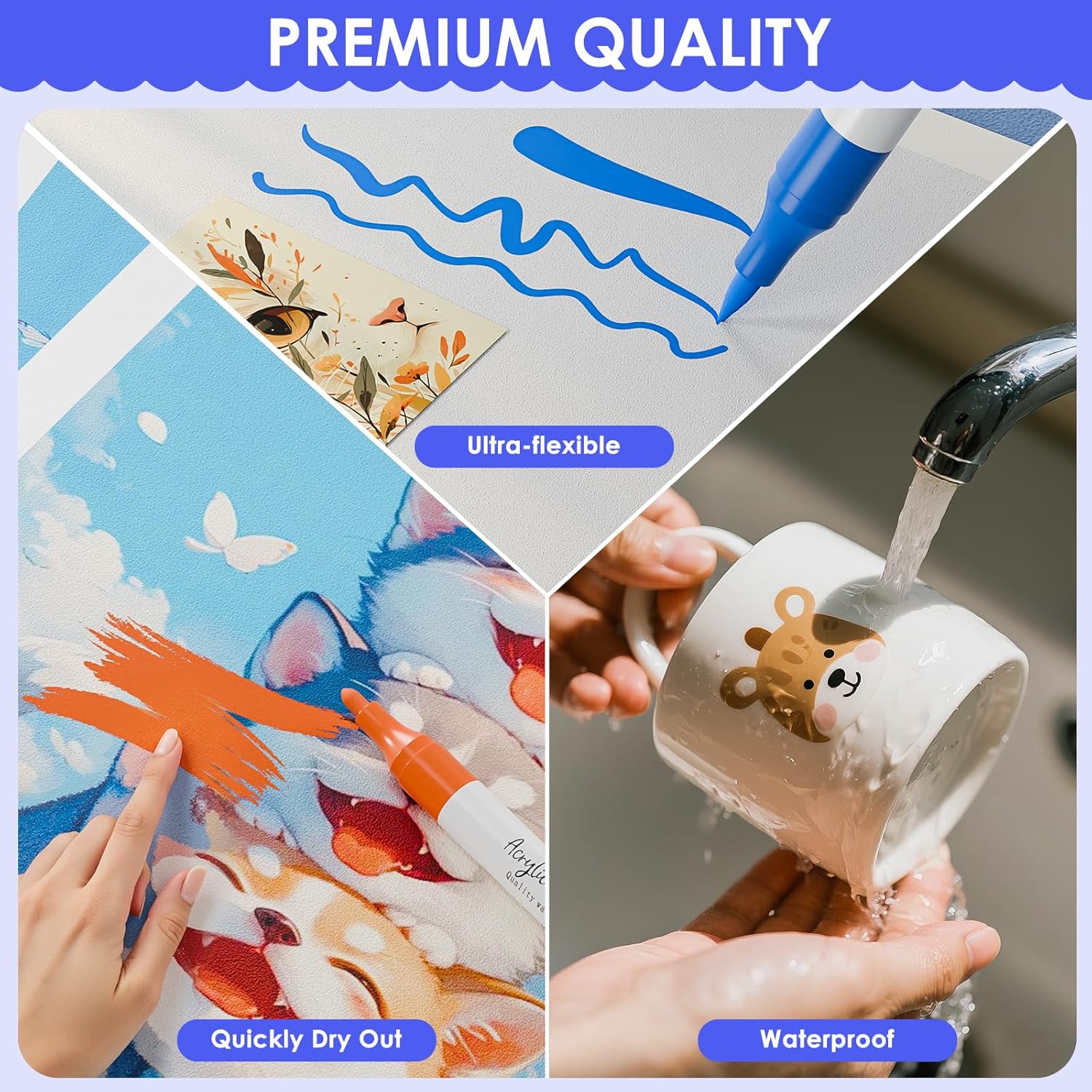 - Upgraded Cotton Nibs: Unlike regular press-on acrylic markers, our acrylic paint have a cotton tip that is ready to use and dries faster. --Note: If not in use, tighten the cap to prevent the ink from drying out.