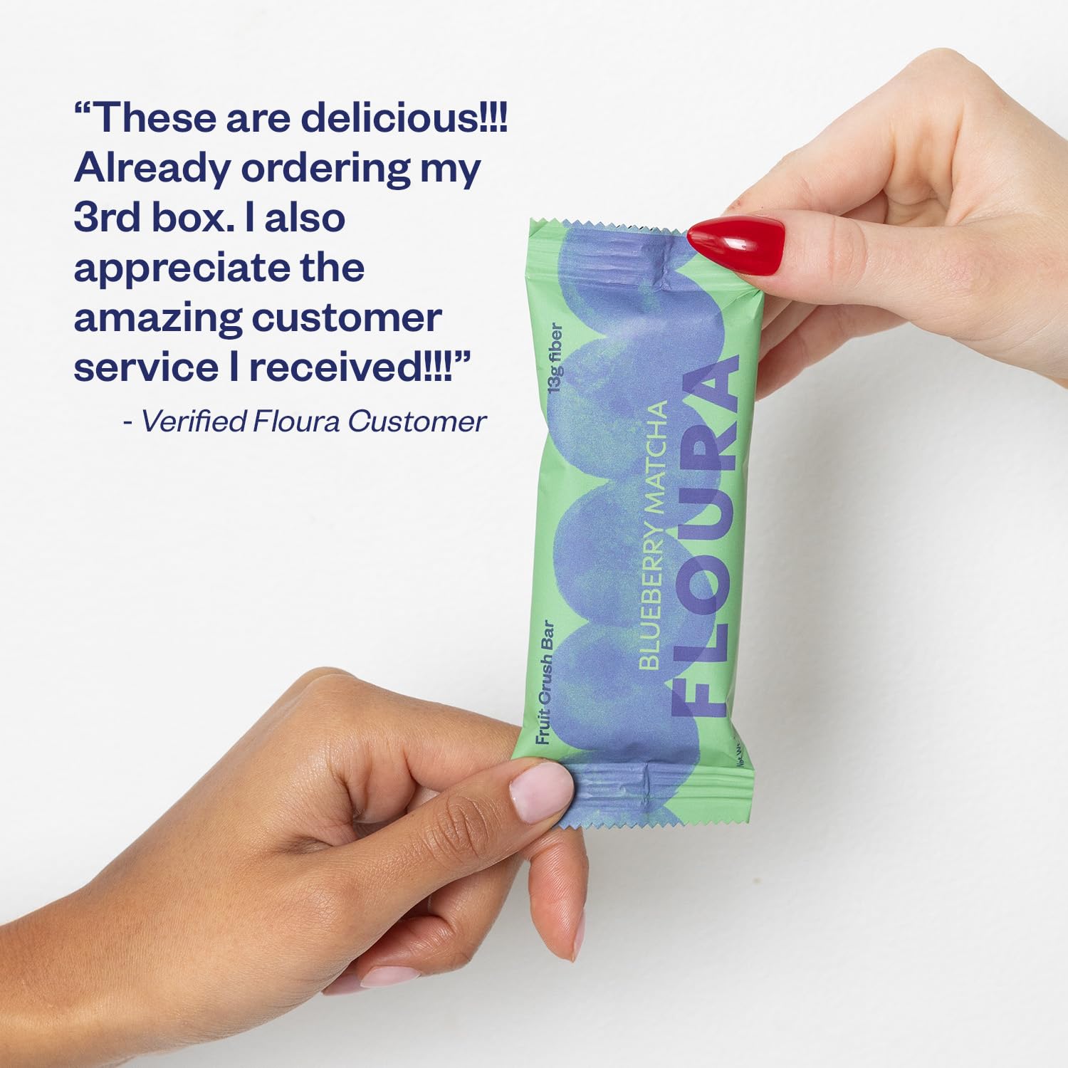 Floura Blueberry Matcha Fruit-Forward Fiber Bars– High Fiber, Vegan, Gluten & Dairy Free, Low Calorie Healthy Snack Bars with Upcycled Produce for Gut Health [10 Pack]