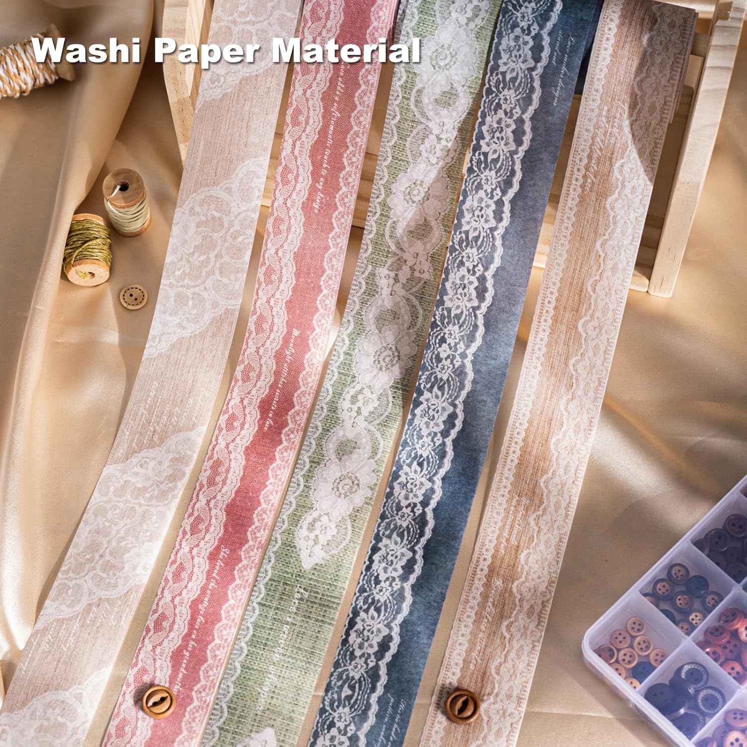 - Elegant Lace Designs: 6 rolls of 1.57in wide washi tape, each featuring a unique lace fabric pattern, bring a vintage and romantic touch to your scrapbooks, journals, and crafts